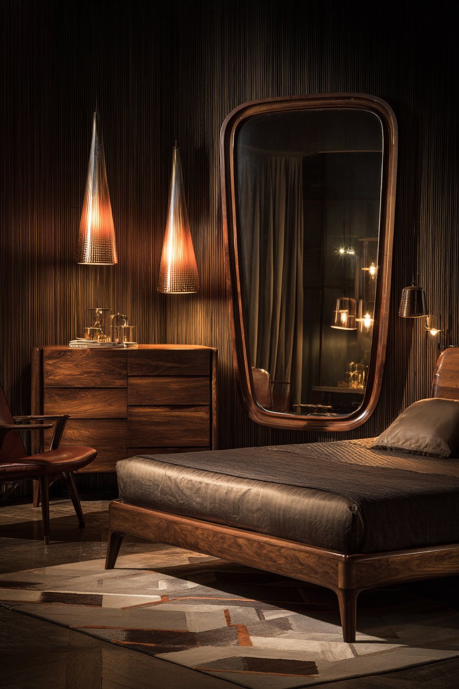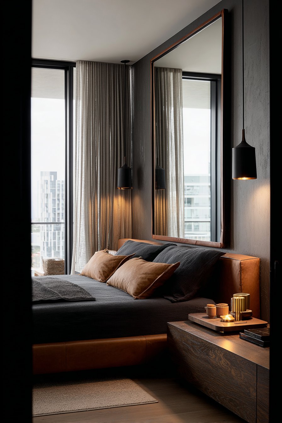 - Use charcoal, navy, deep brown, or black as primary bedroom colors