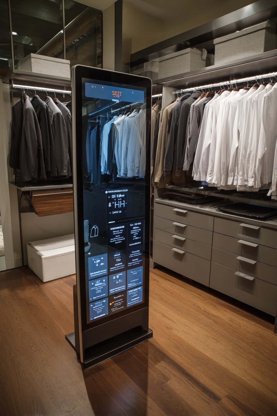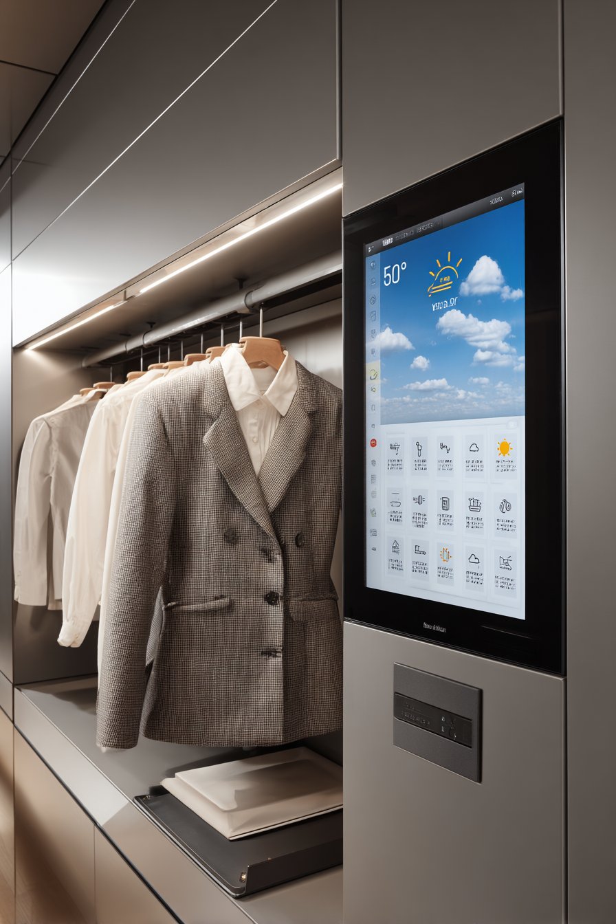 The tech-forward bedroom setting includes complementary elements that reinforce intelligent living: automated lighting systems that adjust throughout the day to support circadian rhythms; conveniently located charging stations that eliminate visible cord clutter; and sleek contemporary furniture in cool greys that provides a sophisticated backdrop for technology integration. This is design that acknowledges how we actually live now—connected, busy, tech-dependent—and embraces it with style.