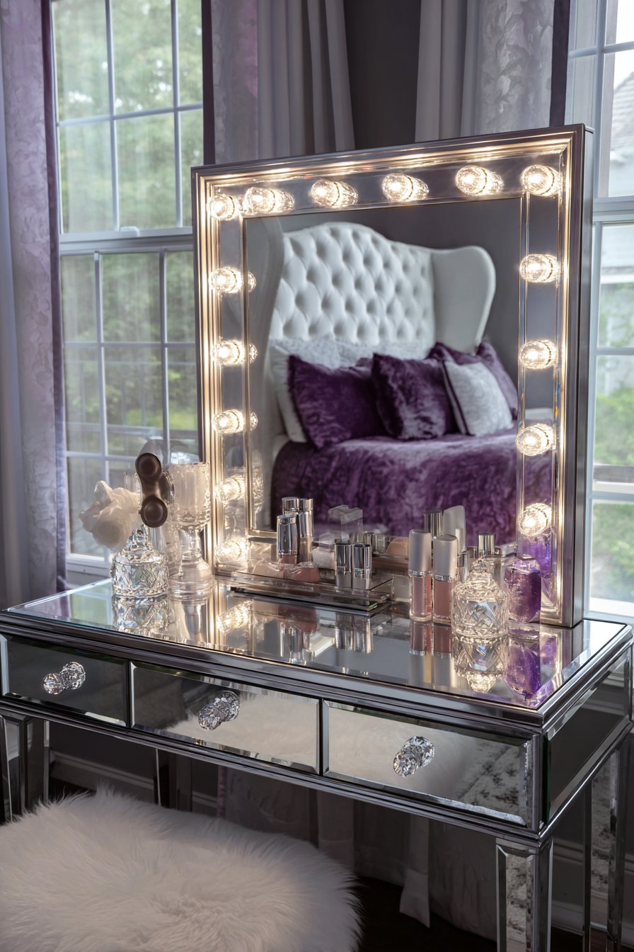 - Keep the vanity surface organized but display beautiful bottles and accessories