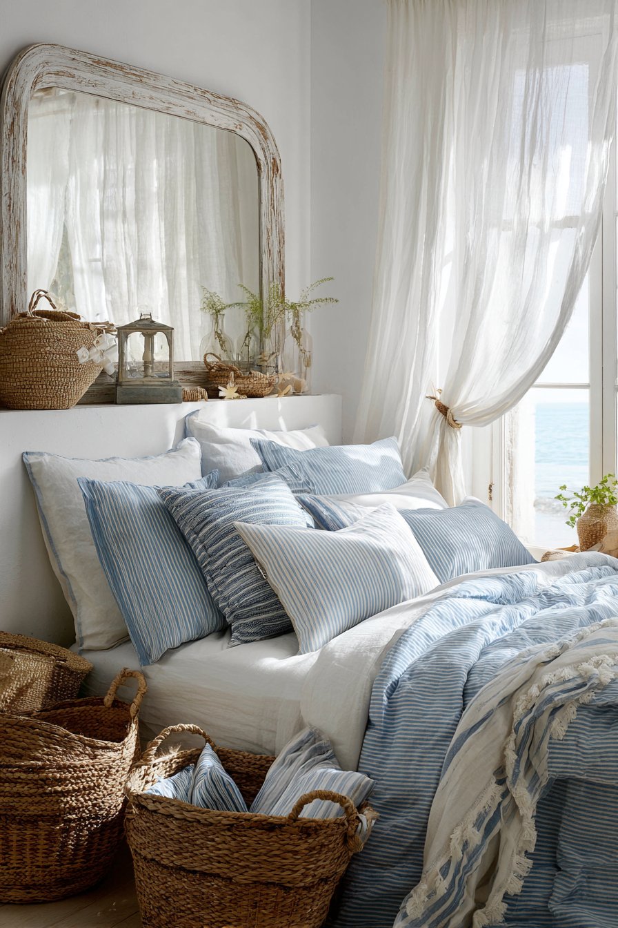 - Use simple, natural fabrics like cotton and linen for curtains and bedding