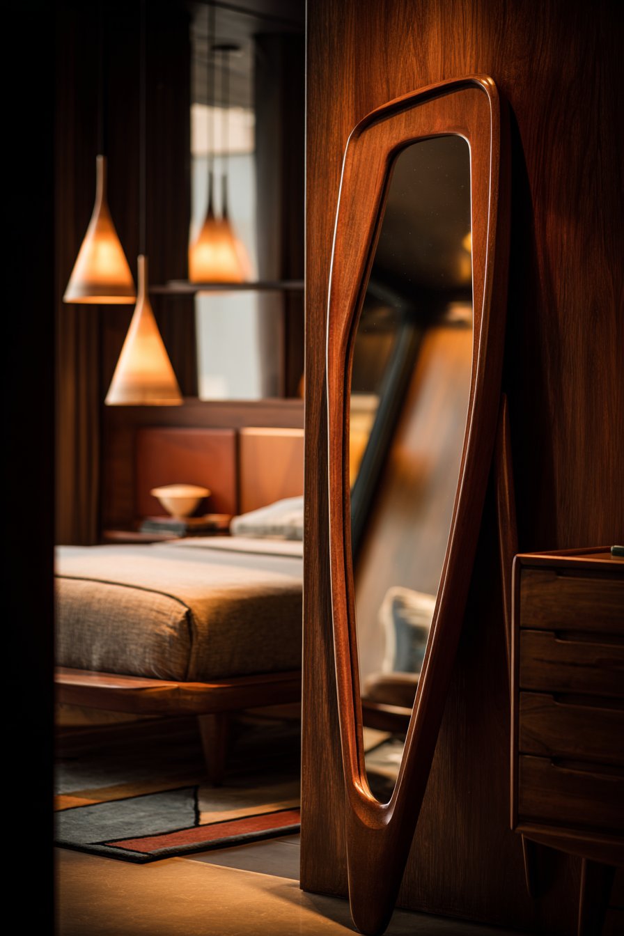 Historical authenticity elevates period-specific dressing mirror ideas for bedroom installations above superficial recreations. The Victorian cheval mirror incorporates genuine design elements from the era—carved mahogany, tilting mechanisms, ornate feet. Mid-century teardrops feature authentic atomic-age silhouettes and walnut construction. French country mirrors show proper distressing techniques and carved details. This attention to historical accuracy creates rooms with genuine character rather than costume-like approximations.