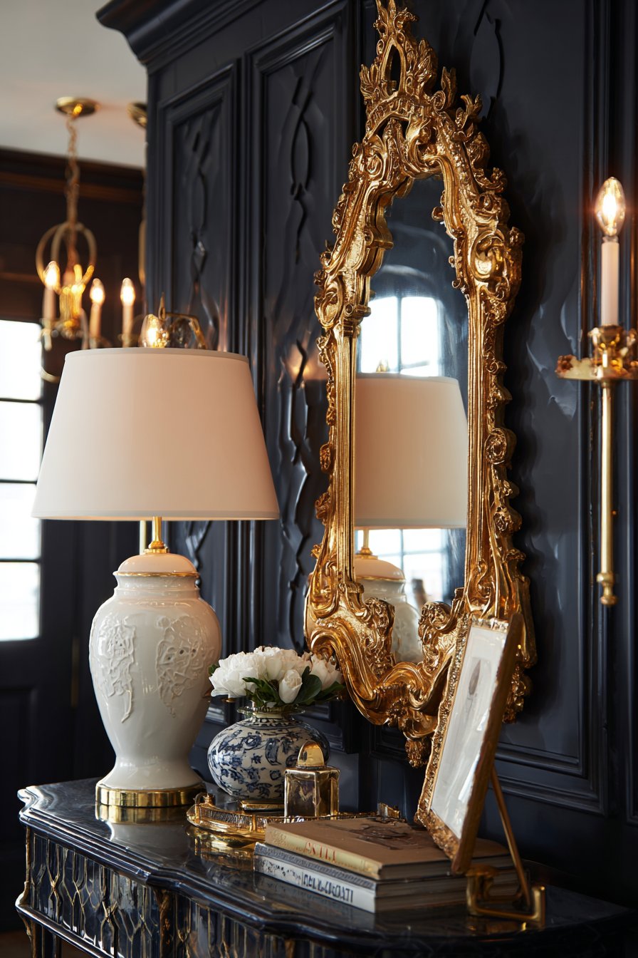 - Incorporate ornate but not overly gilded mirrors and accessories for refined elegance