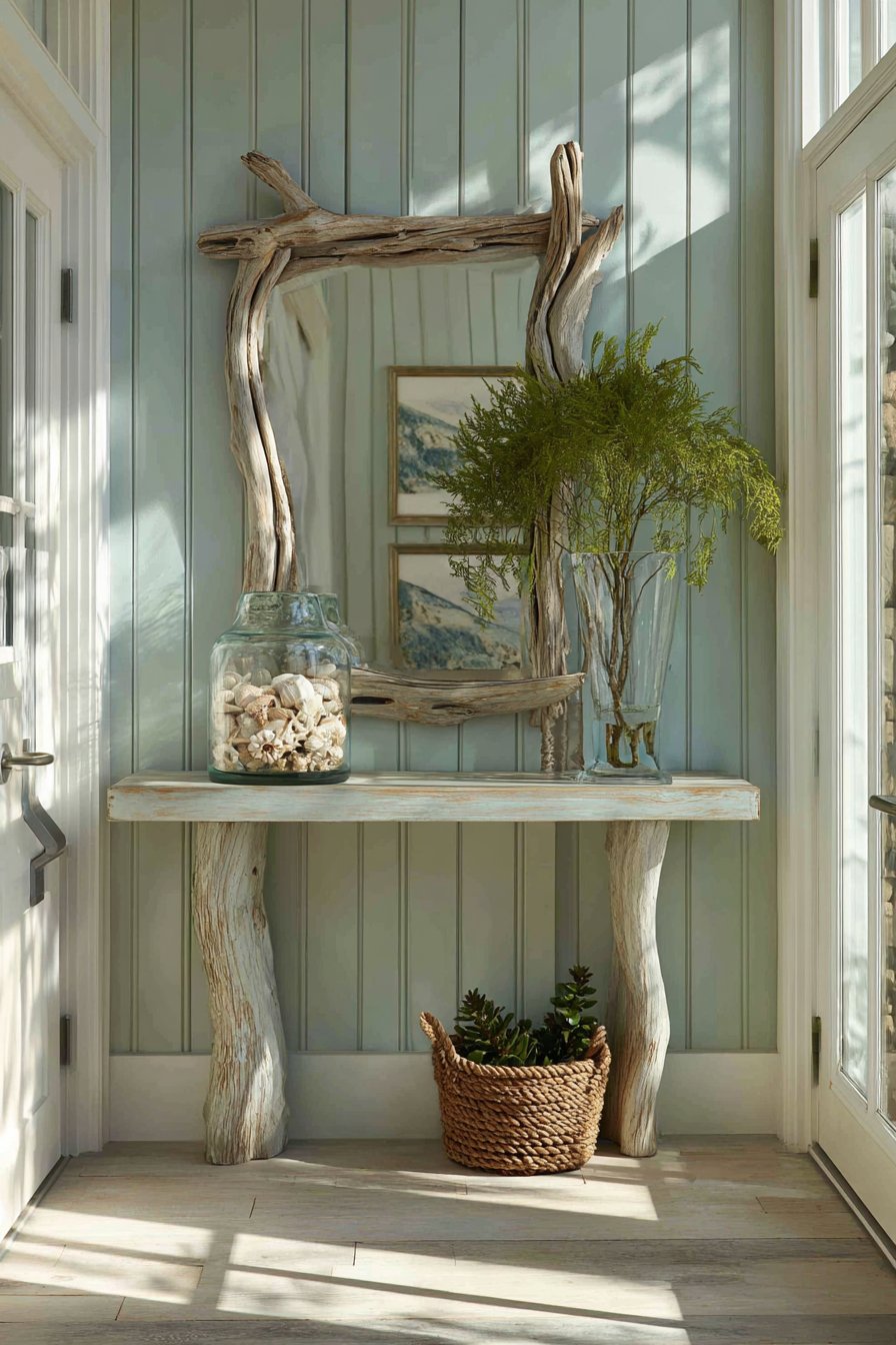 - Use the mirror to reflect natural light and visually expand the entryway space