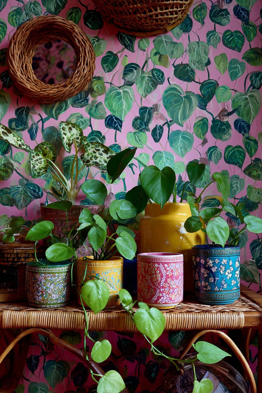 - Rotate ceramic planter colors seasonally while keeping the same wallpaper for fresh looks