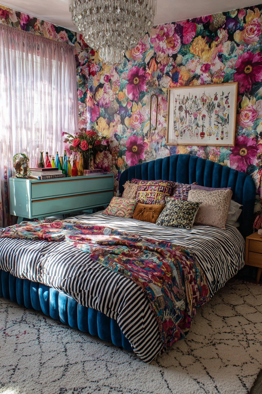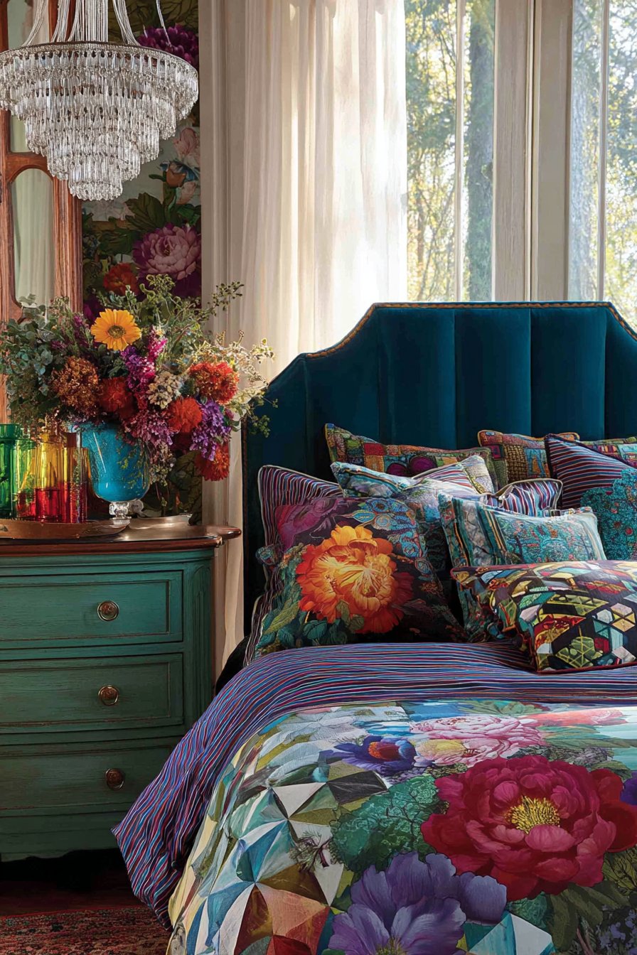 - Mix patterns by varying scale—pair large florals with small geometrics