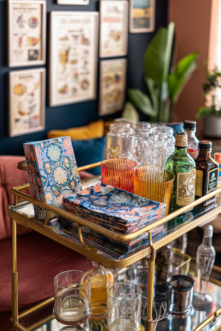 - Balance saturated colors with metallic finishes like brass to add sophistication