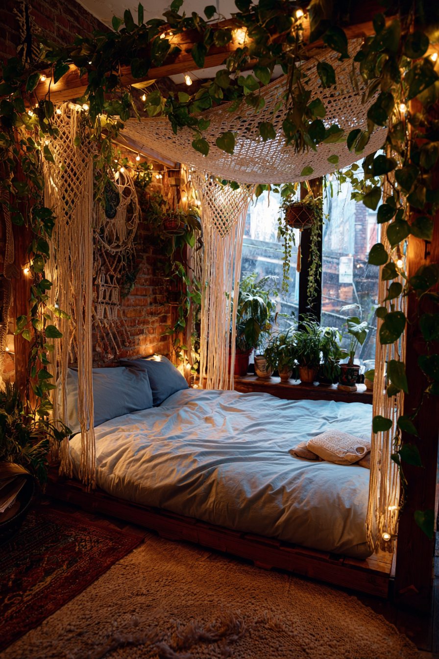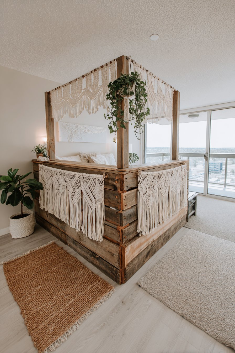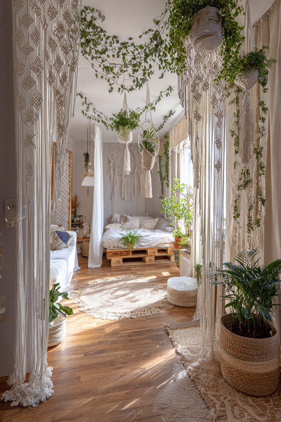 - Position the partition to maximize natural light filtering through the macramé panels