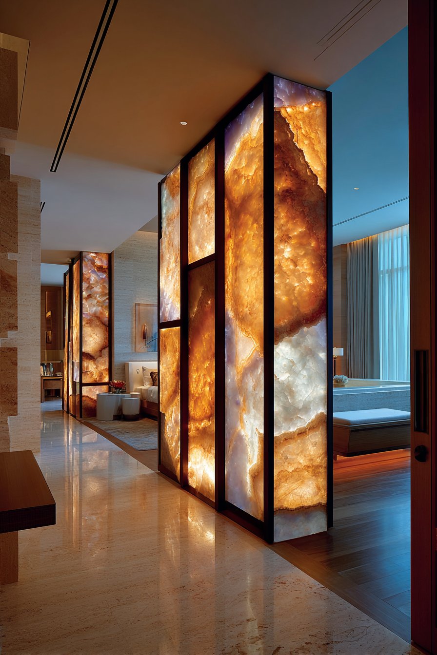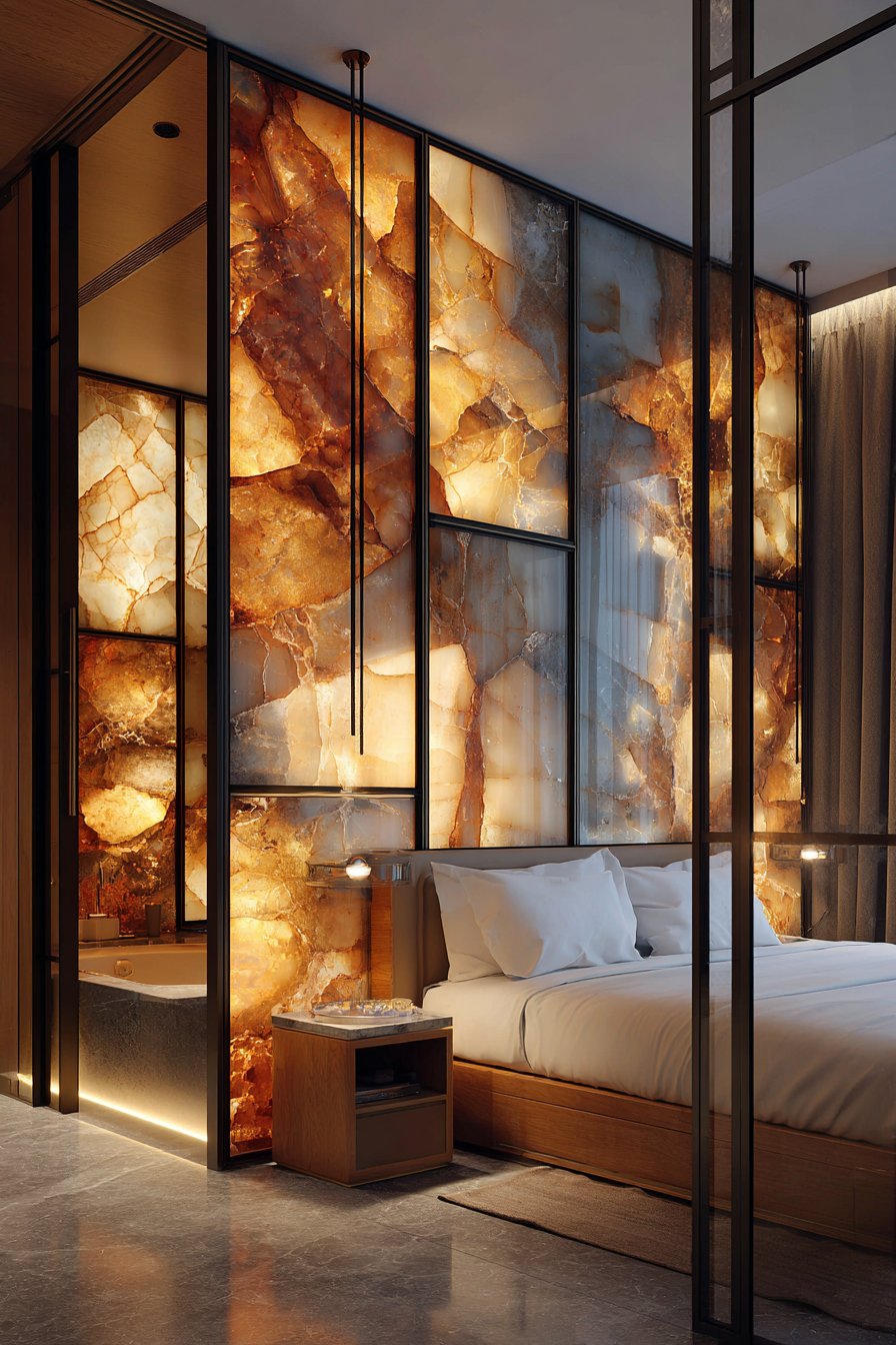 26. Luxury Backlit Onyx Master Suite Partition