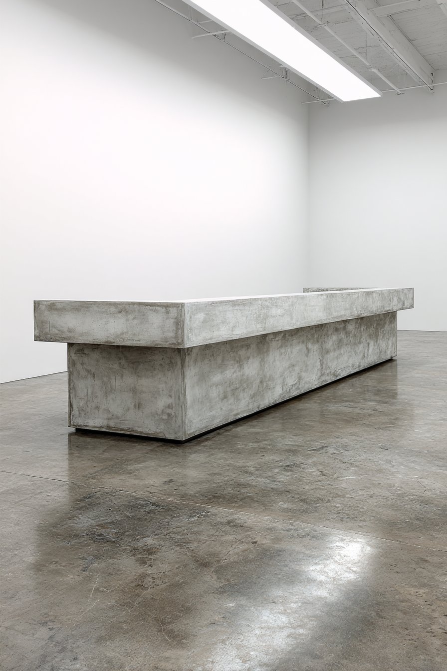Modern architecture sometimes demands bold, sculptural elements that make strong statements while serving practical purposes. This minimalist half wall using poured concrete with smooth troweled finish creates exactly such a sculptural partition in a contemporary gallery-like space. The clean geometric form in light gray concrete with subtle surface variation from the forming process demonstrates how this industrial material can achieve refined, sophisticated results when executed with precision and care. Standing 44 inches tall, the monolithic structure divides the entry from the living area while its substantial mass and minimal form create strong architectural presence.