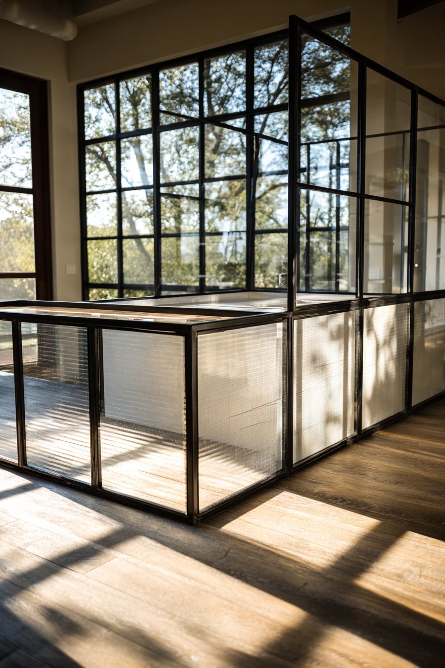 - Choose tempered safety glass for all panels to ensure durability and safety in high-traffic areas