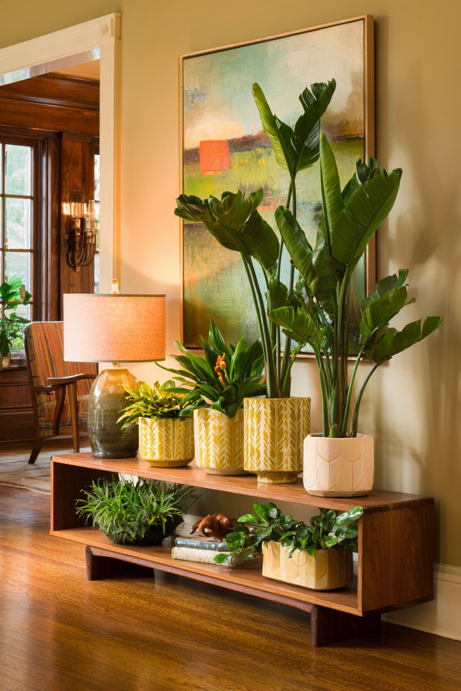 - Select plants that were popular during the mid-century era—rubber trees, bird of paradise, philodendron, pothos
