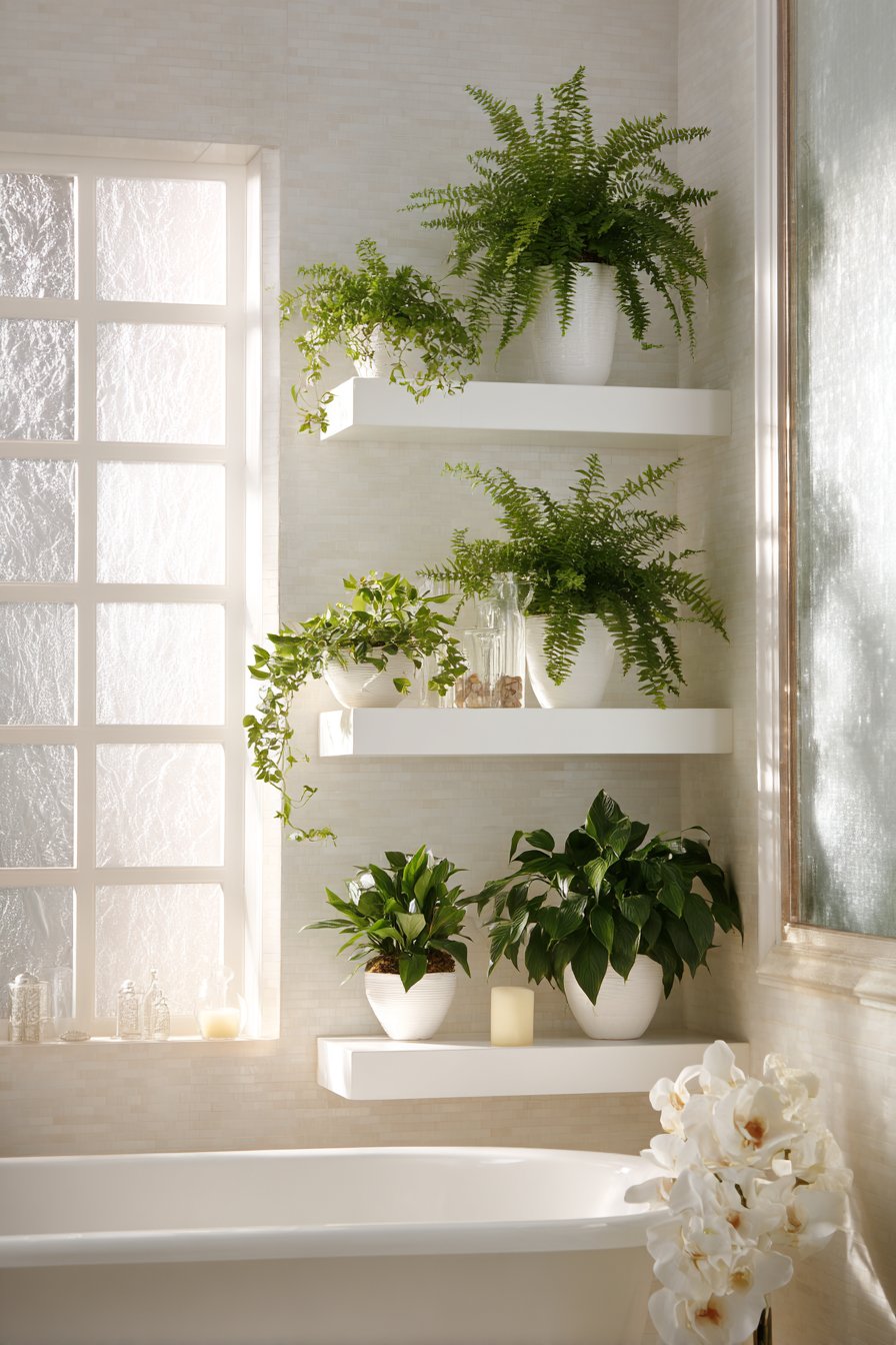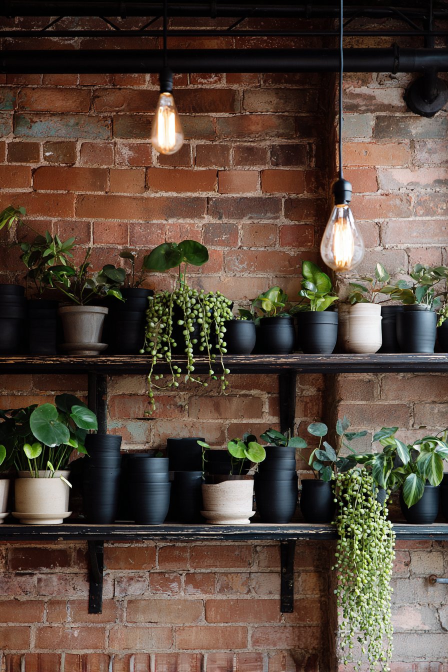 - Use quality floating shelf brackets rated for the combined weight of shelves, pots, and plants
