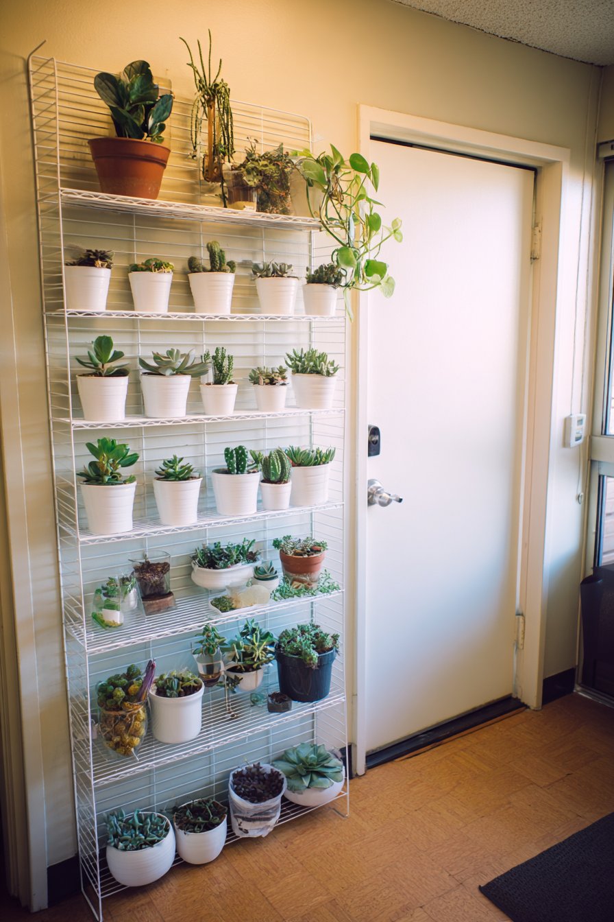 - Install shelving at varied heights to accommodate different plant sizes and create visual interest
