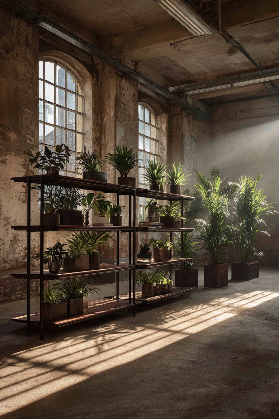 - Choose planters in materials that complement industrial aesthetics: matte black ceramic, galvanized metal, concrete