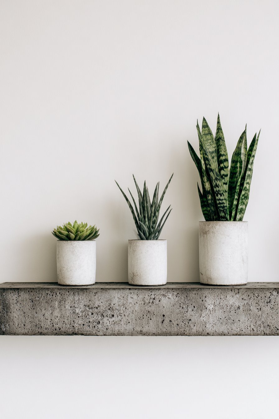 - Choose plants in uniform white or neutral pots to maintain clean, contemporary aesthetic