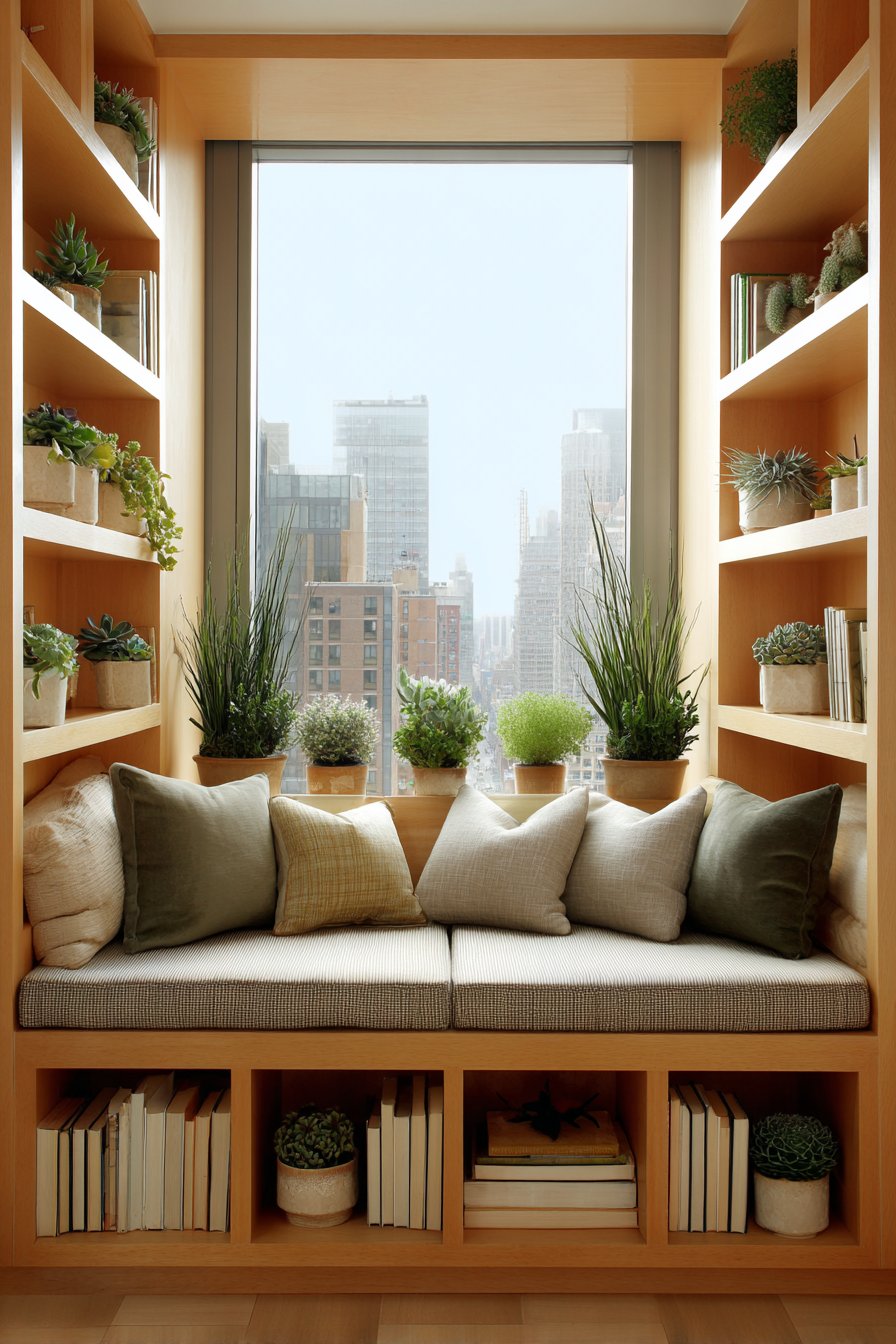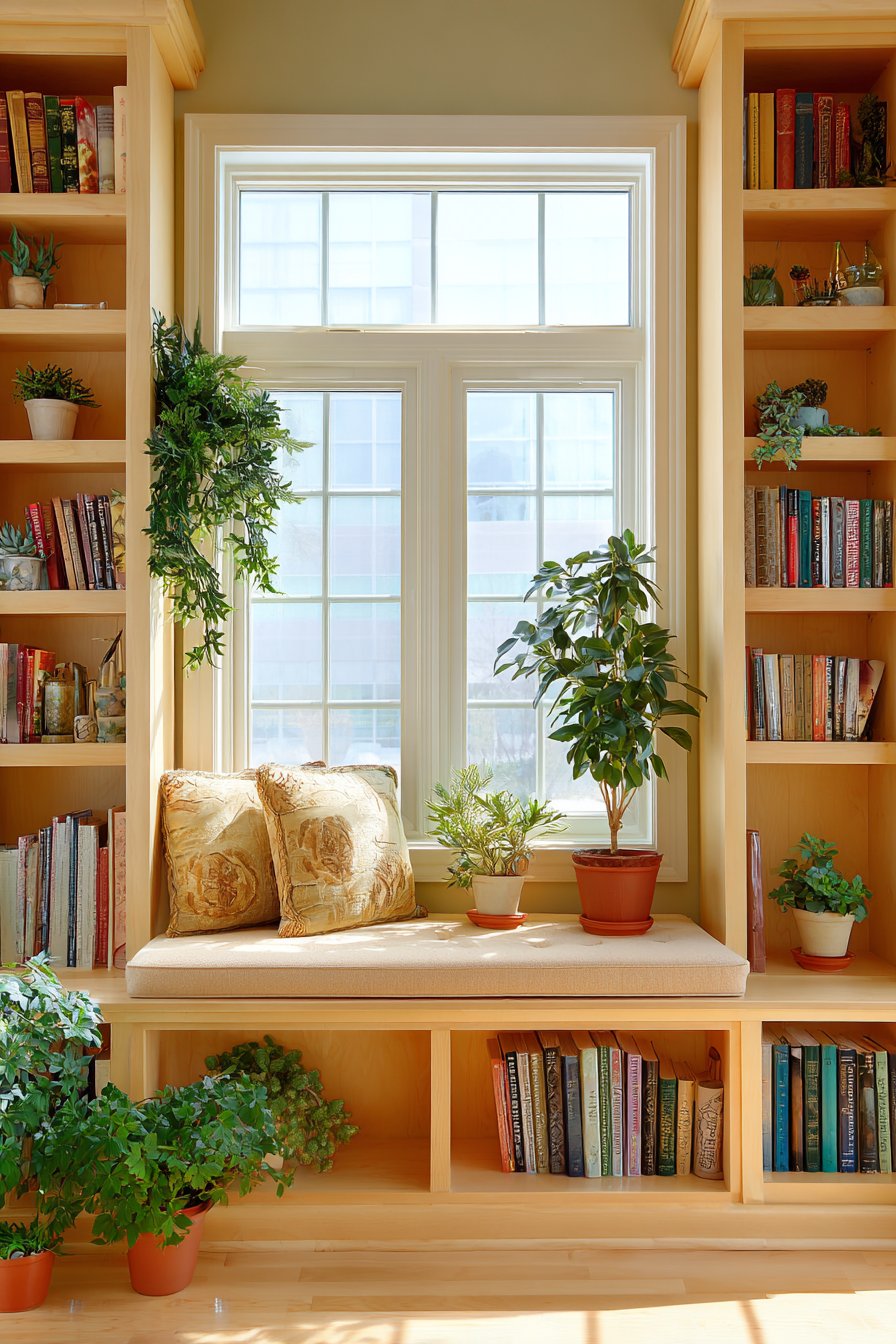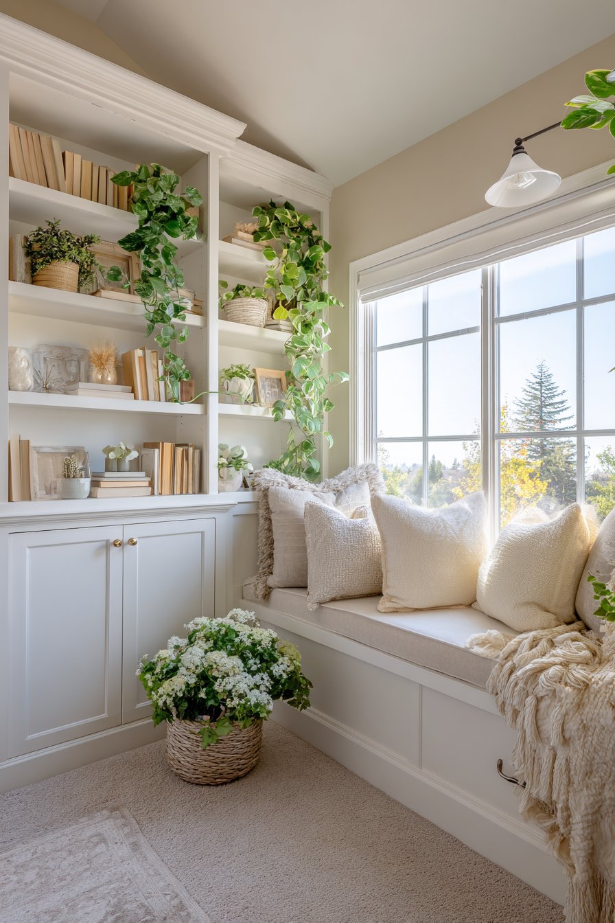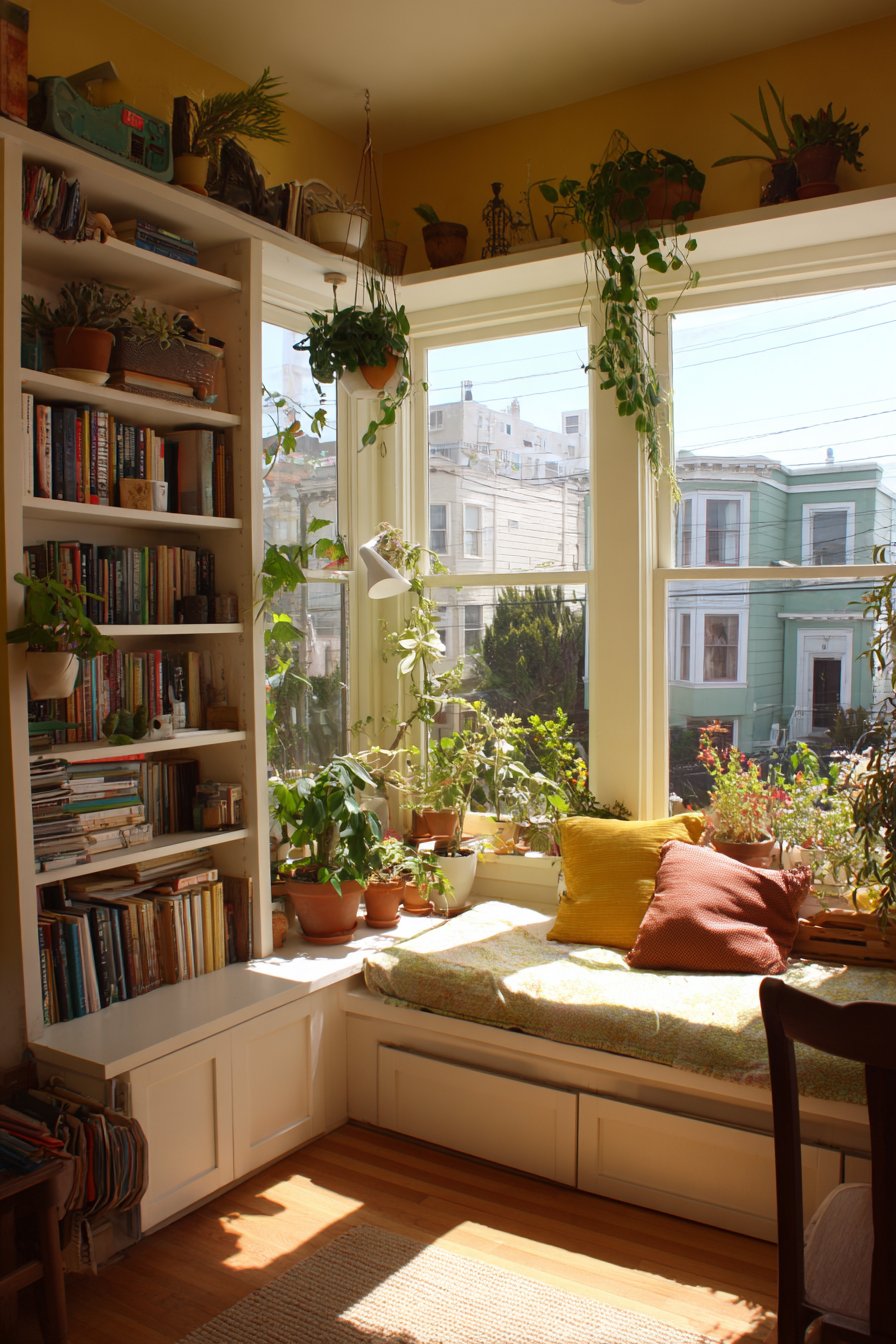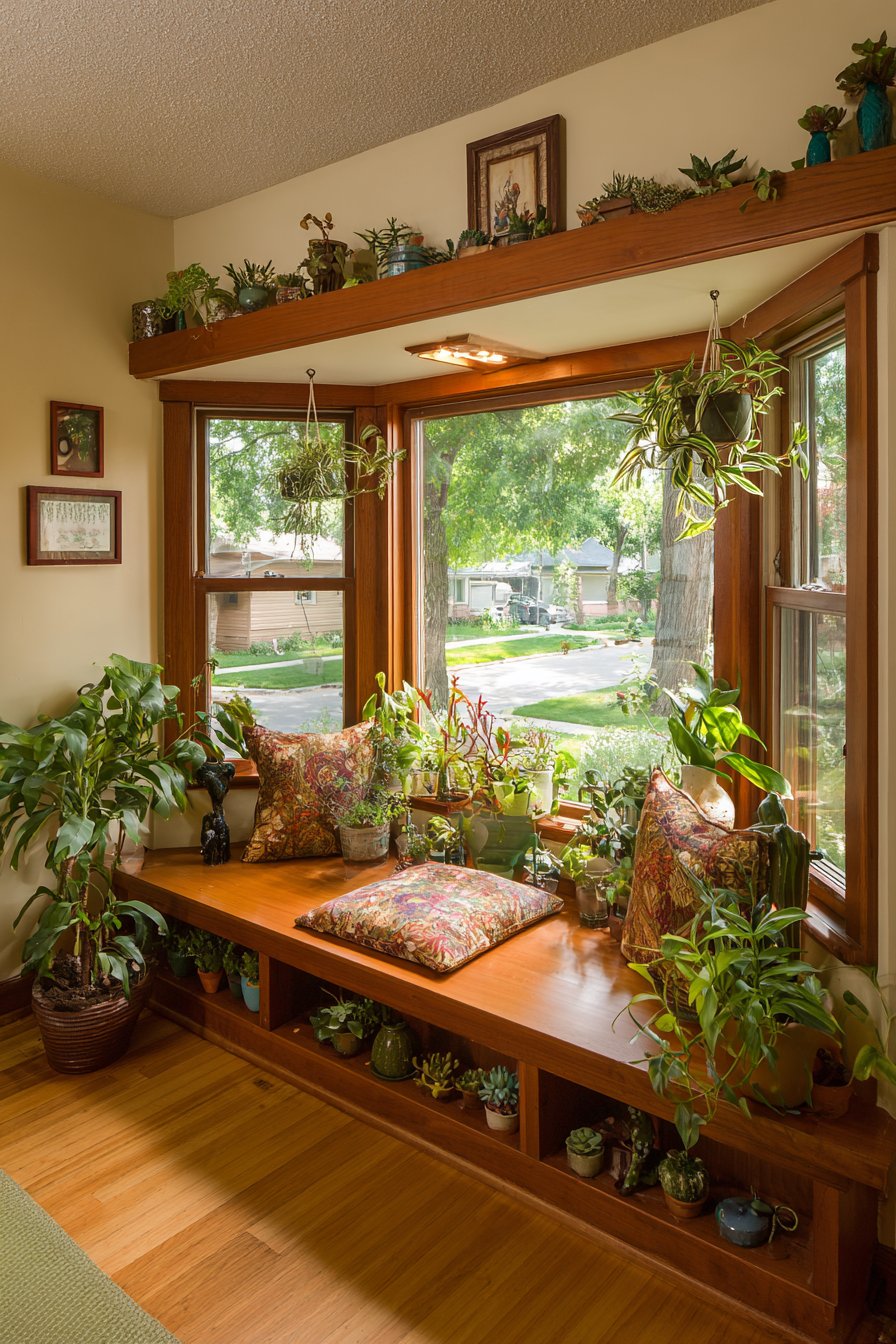- Include hidden storage beneath window seat for plant supplies, extra books, or comfort items