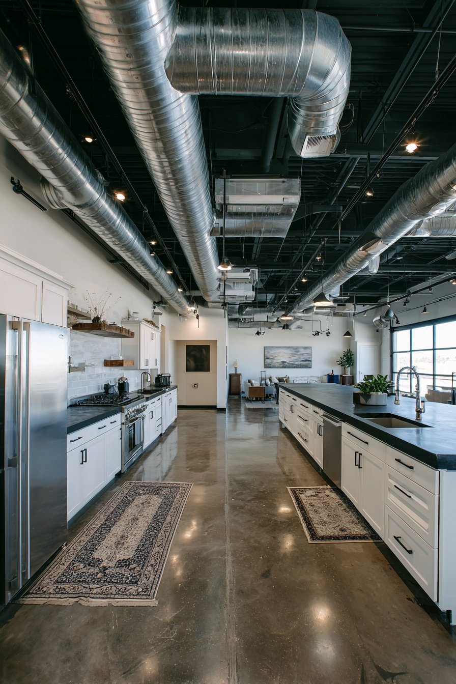7. Vaulted Ceiling with Exposed Black Metal Beams
