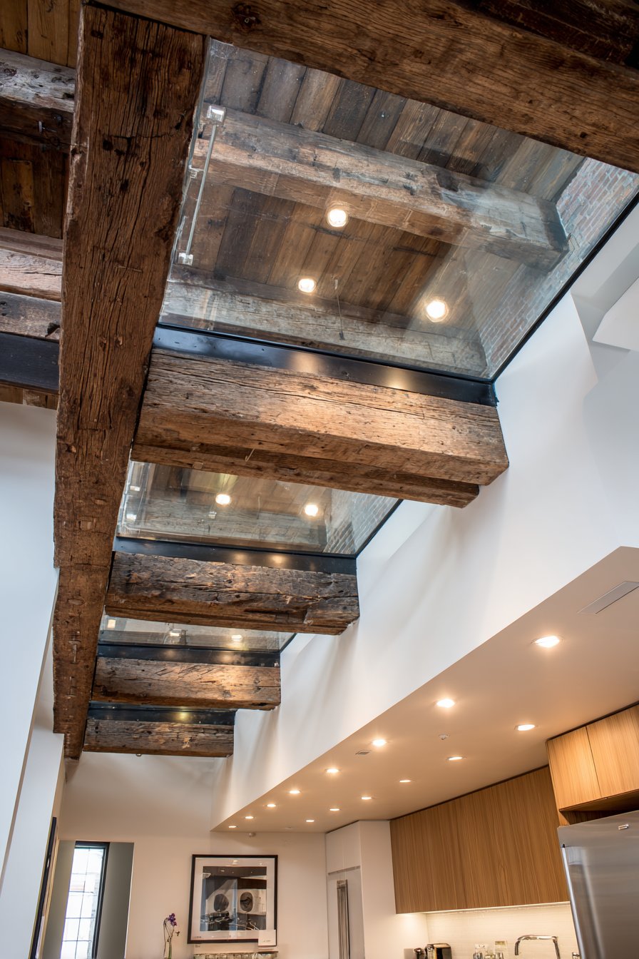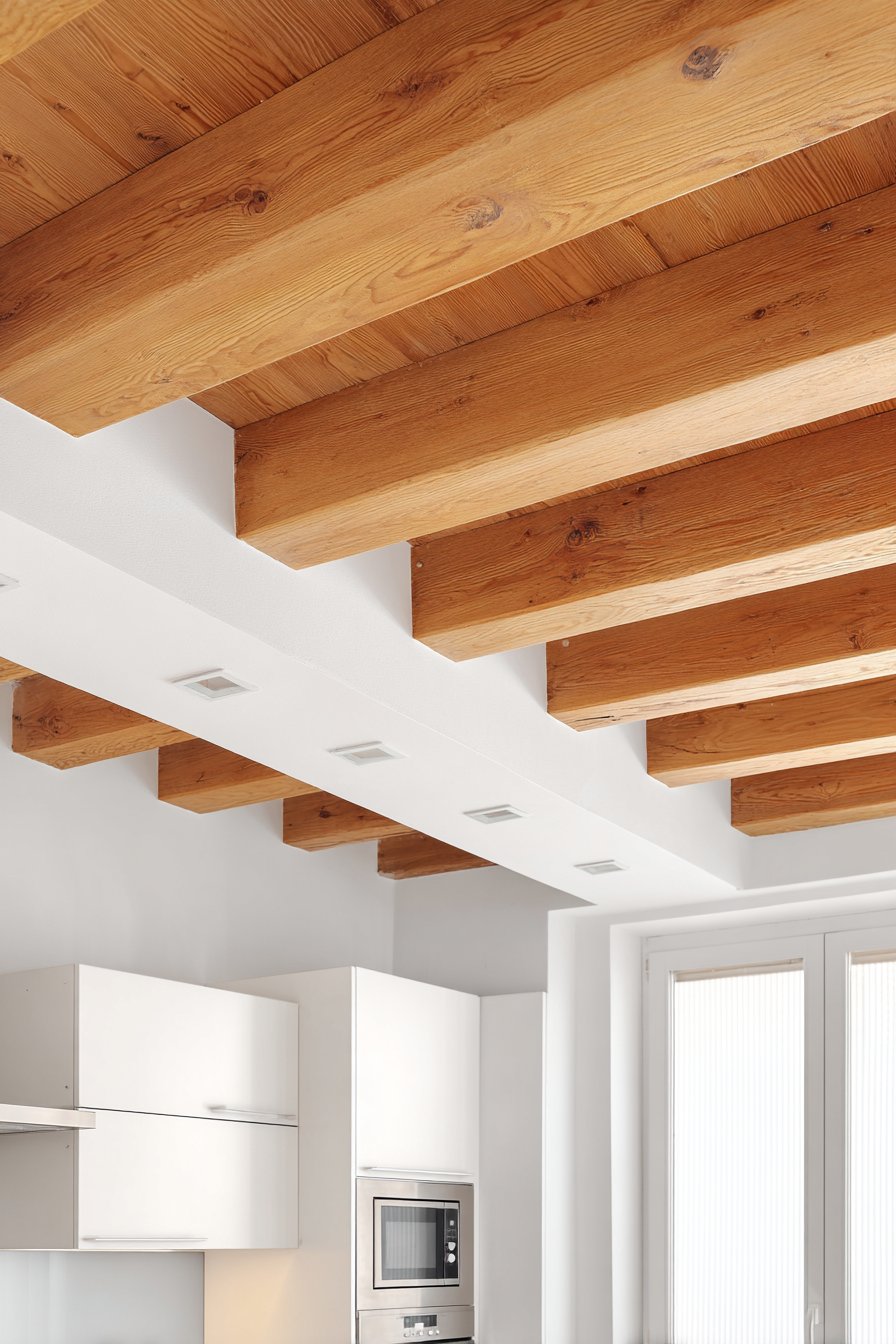 • Choose beams in light oak, ash, or maple for a contemporary feel rather than dark traditional woods
