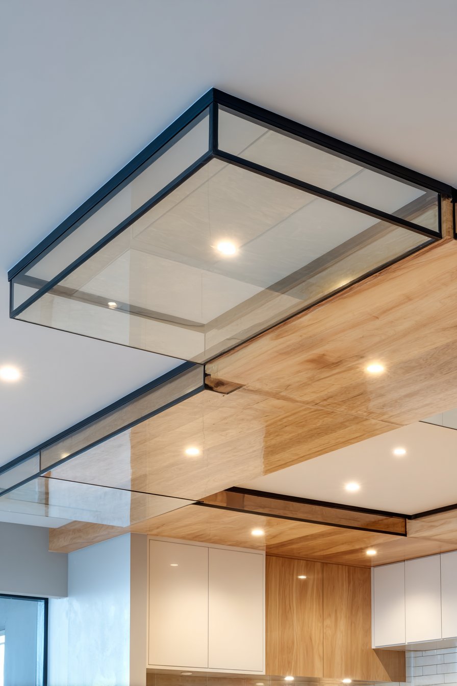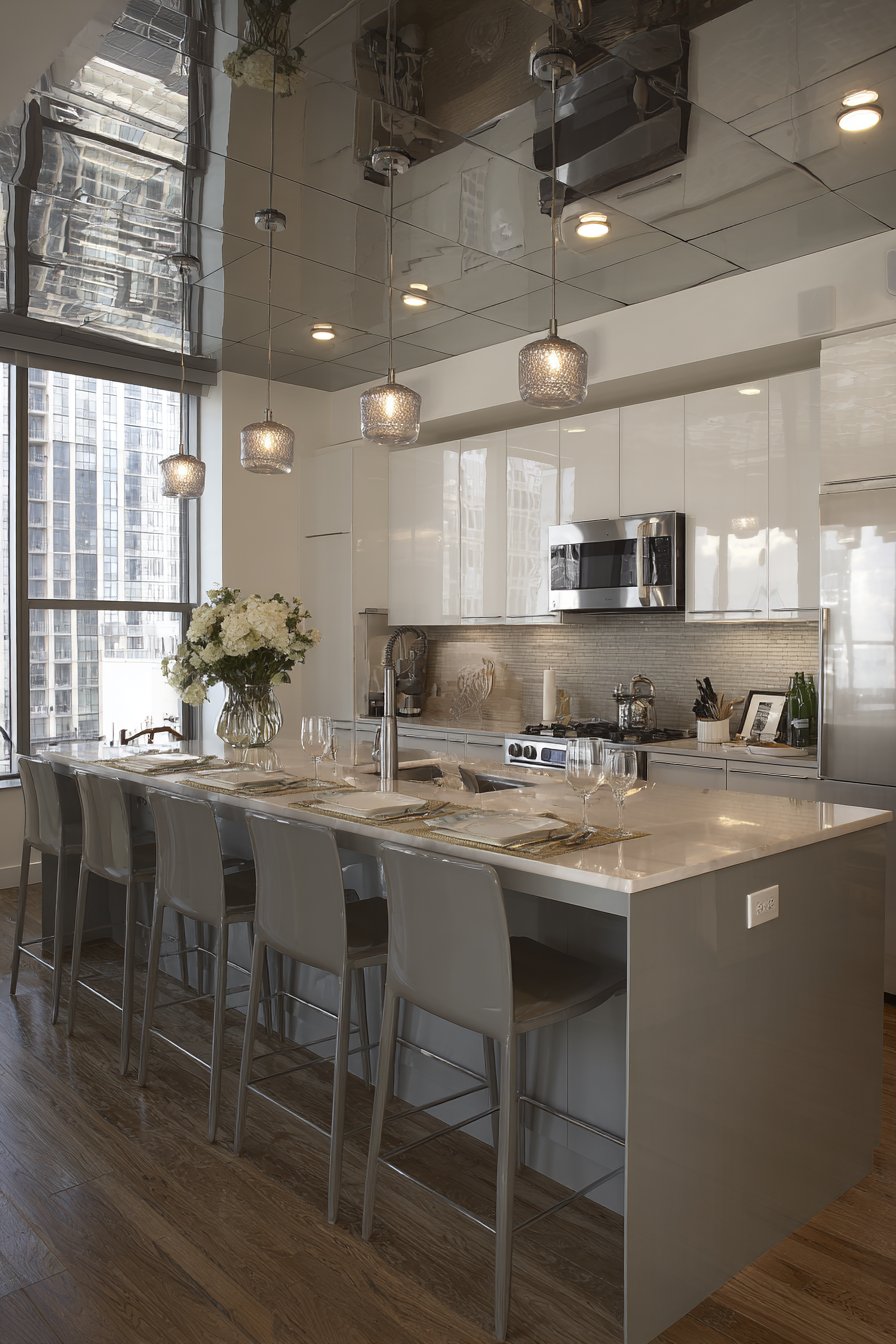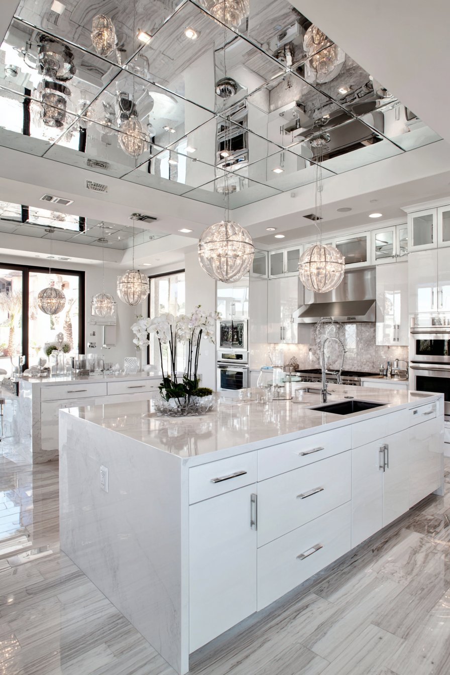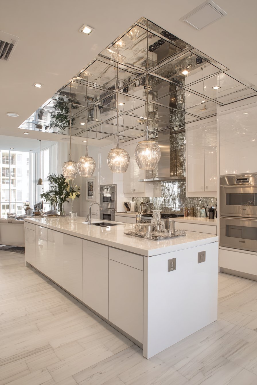 21. Mirrored Ceiling Panels Over Kitchen Island
