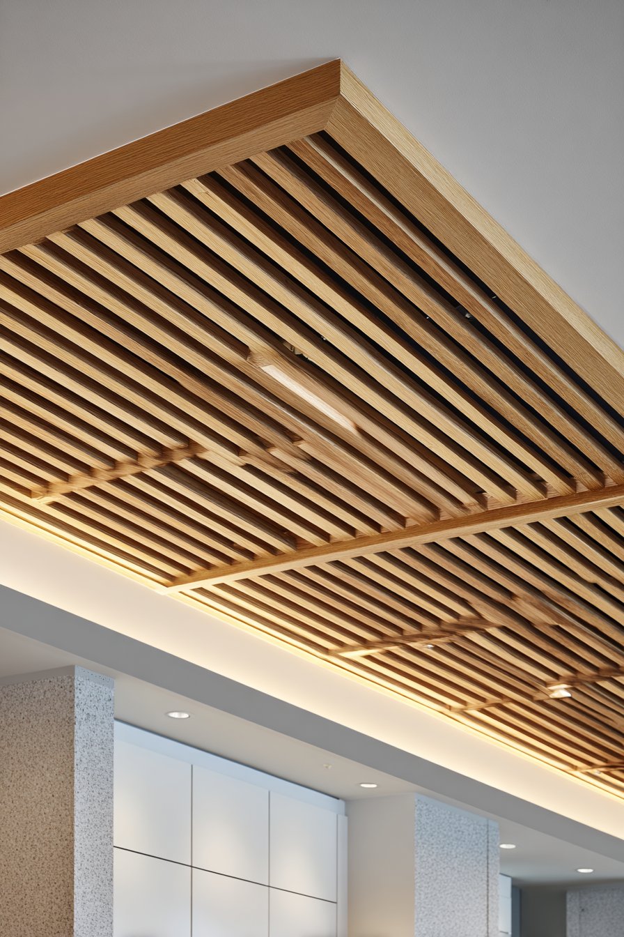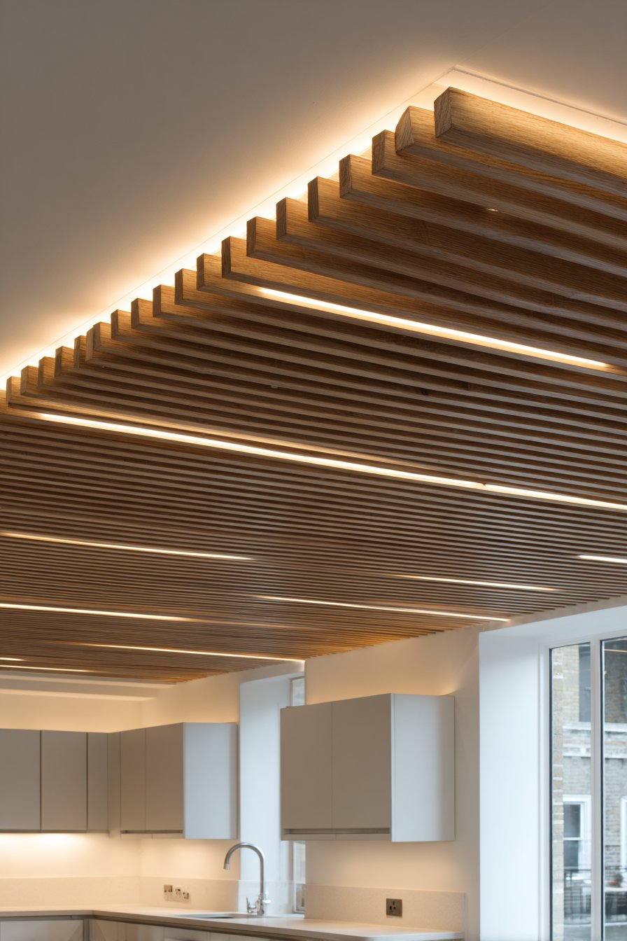 23. Wooden Slat Ceiling with Integrated Uplighting
