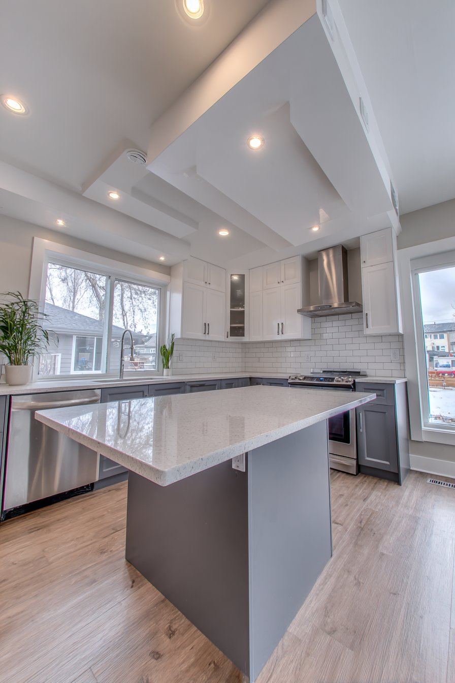 • Drop soffit 12-18 inches to accommodate recessed lighting while maintaining proportional balance