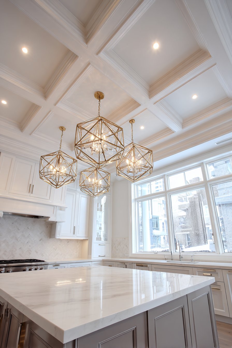 • Ensure the coffer grid relates to the kitchen layout, aligning frames with islands or major architectural features