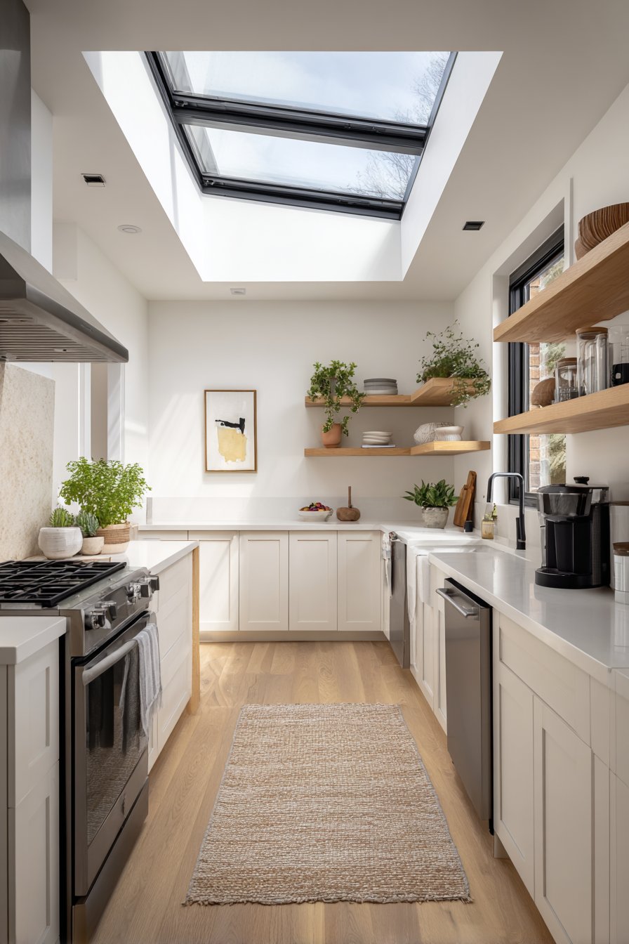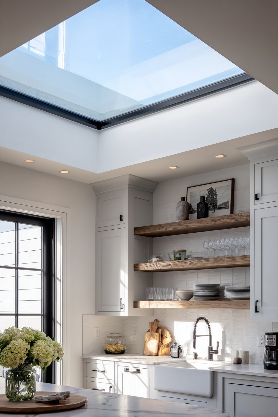 • Size skylights to approximately 5-15% of the kitchen floor area for balanced natural light without excessive heat