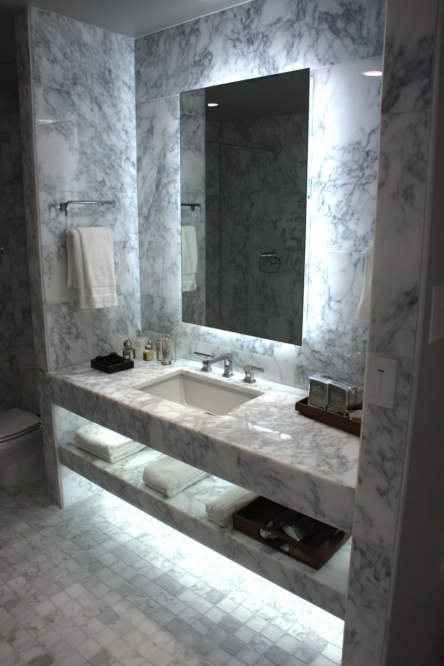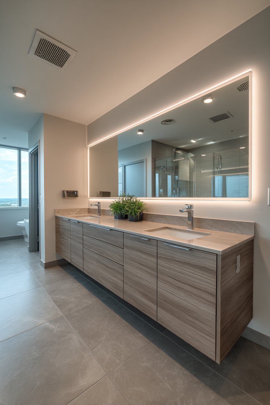 3. Wall-to-Wall Mirror with Dual LED Strip Illumination