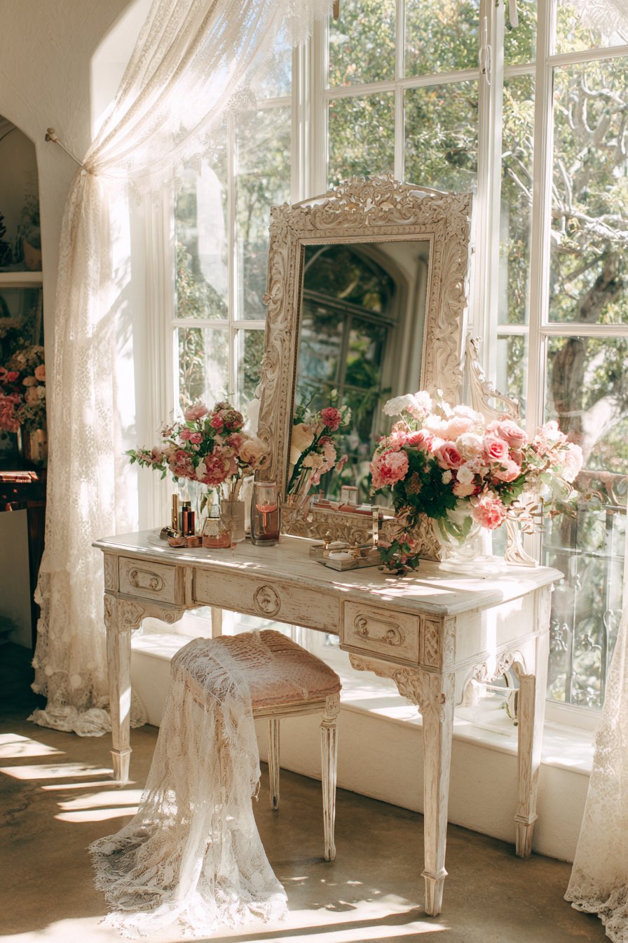 22. Romantic Vintage Mirror with Ornate Carved Frame