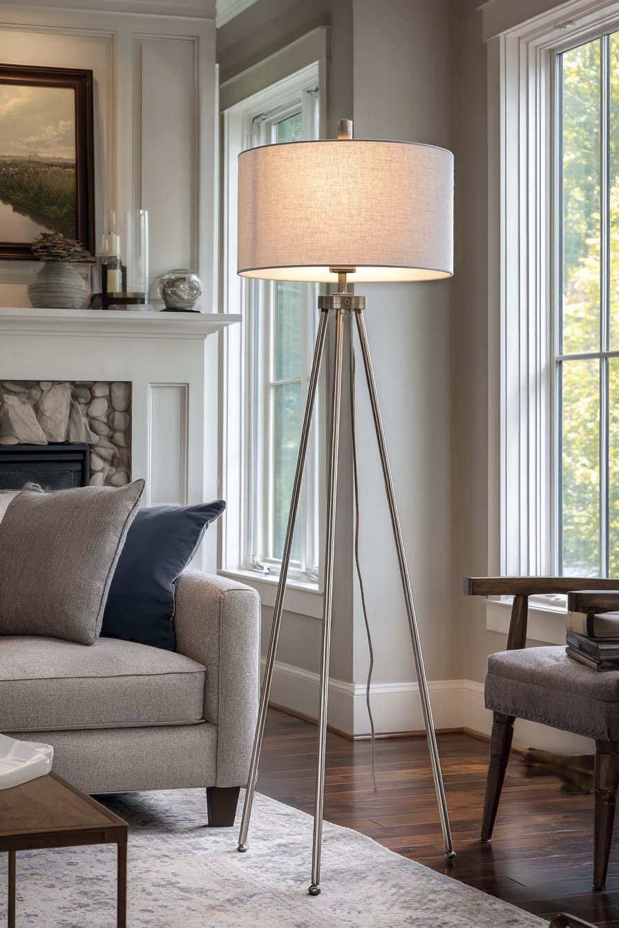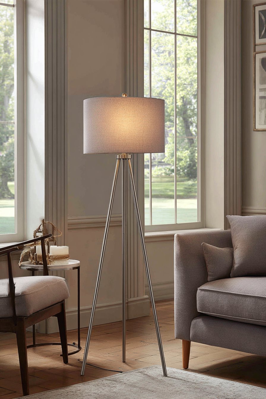 This lamp style particularly appeals to those who resist being confined to a single design category. The clean lines read as contemporary while the tripod base nods to mid-century and traditional forms. The neutral color palette—grey shade, brushed nickel, natural wood in the tripod legs—ensures compatibility with evolving tastes and changing color schemes. Unlike highly stylized pieces that demand specific contexts, this lamp adapts gracefully to various settings while maintaining its own quiet sophistication. For pragmatic homeowners building flexible, long-lasting interiors, transitional pieces like this lamp provide essential versatility.