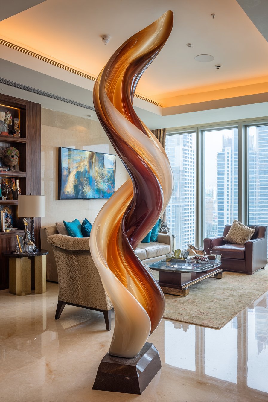 The luxury living room includes marble flooring, curated art collection, and bespoke furnishings that create gallery-quality environment where this lamp feels properly contextualized. Controlled natural light and accent lighting create museum-quality ambiance that allows each piece to shine without competition. Professional photography with museum-quality lighting captures the lamp’s artisanal craftsmanship and investment-piece status. The attention to proportion, material quality, and artistic merit elevates this lamp from functional object to collectible art that provides illumination.