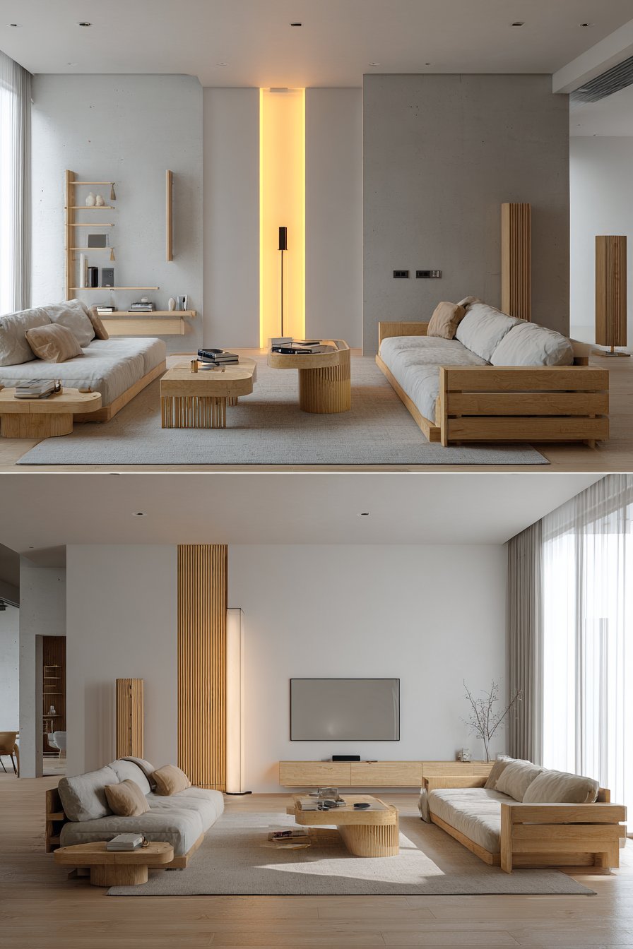 - Choose a cohesive neutral color palette (typically whites, greys, blacks, and natural materials) for serene unity