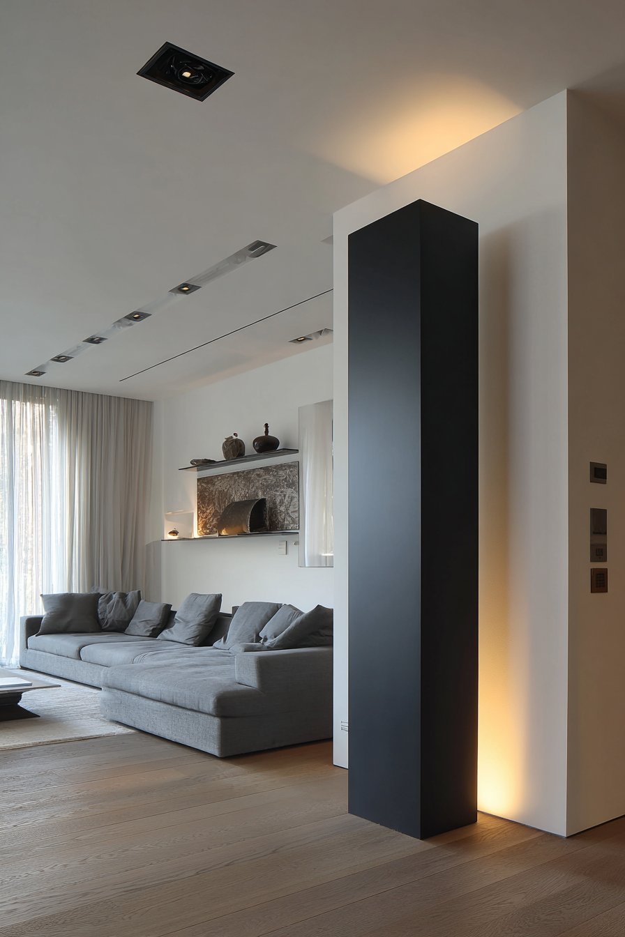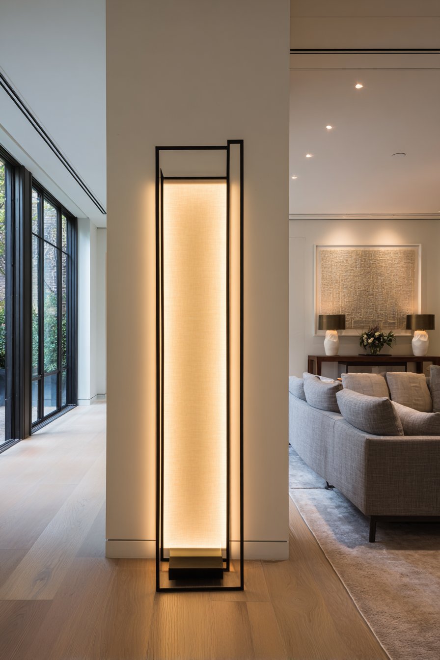 - Use vertical elements like floor lamps to draw the eye upward and create sense of height