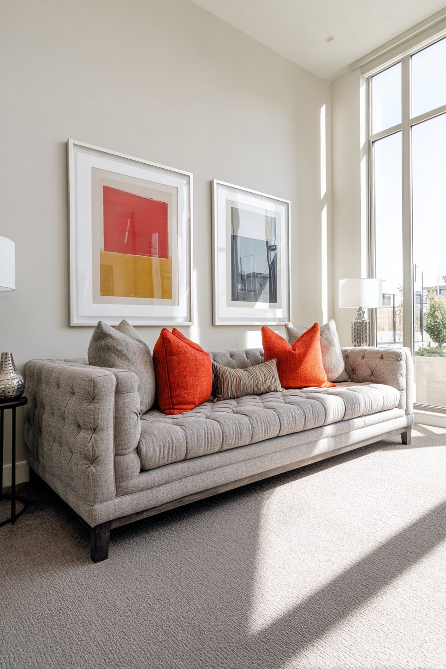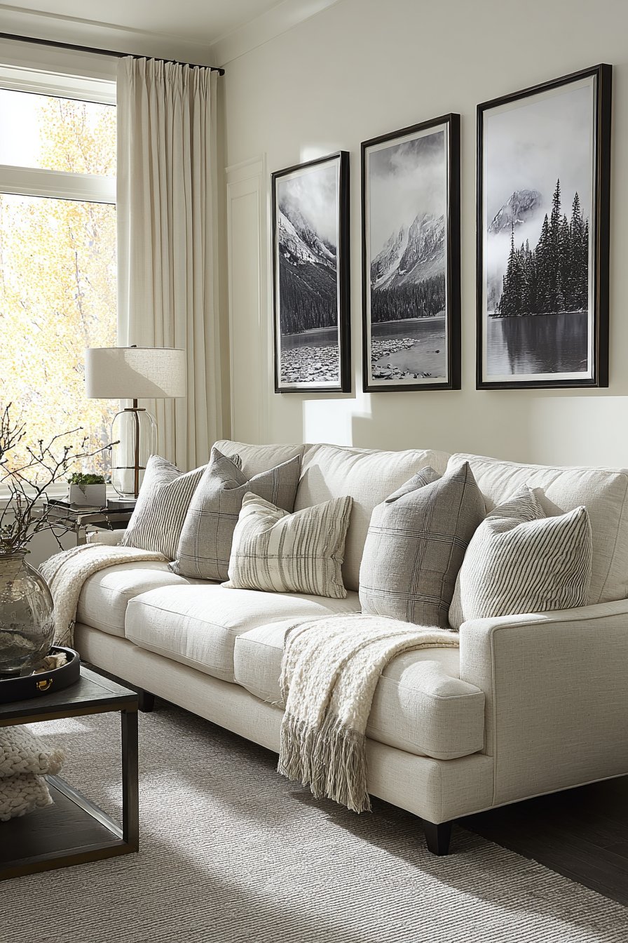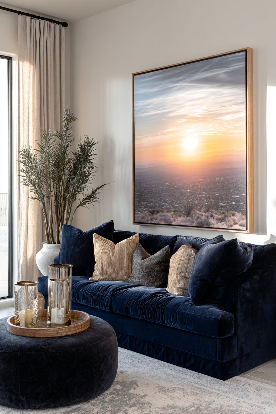 - Select artwork that spans 60-75% of your sofa width for optimal visual balance