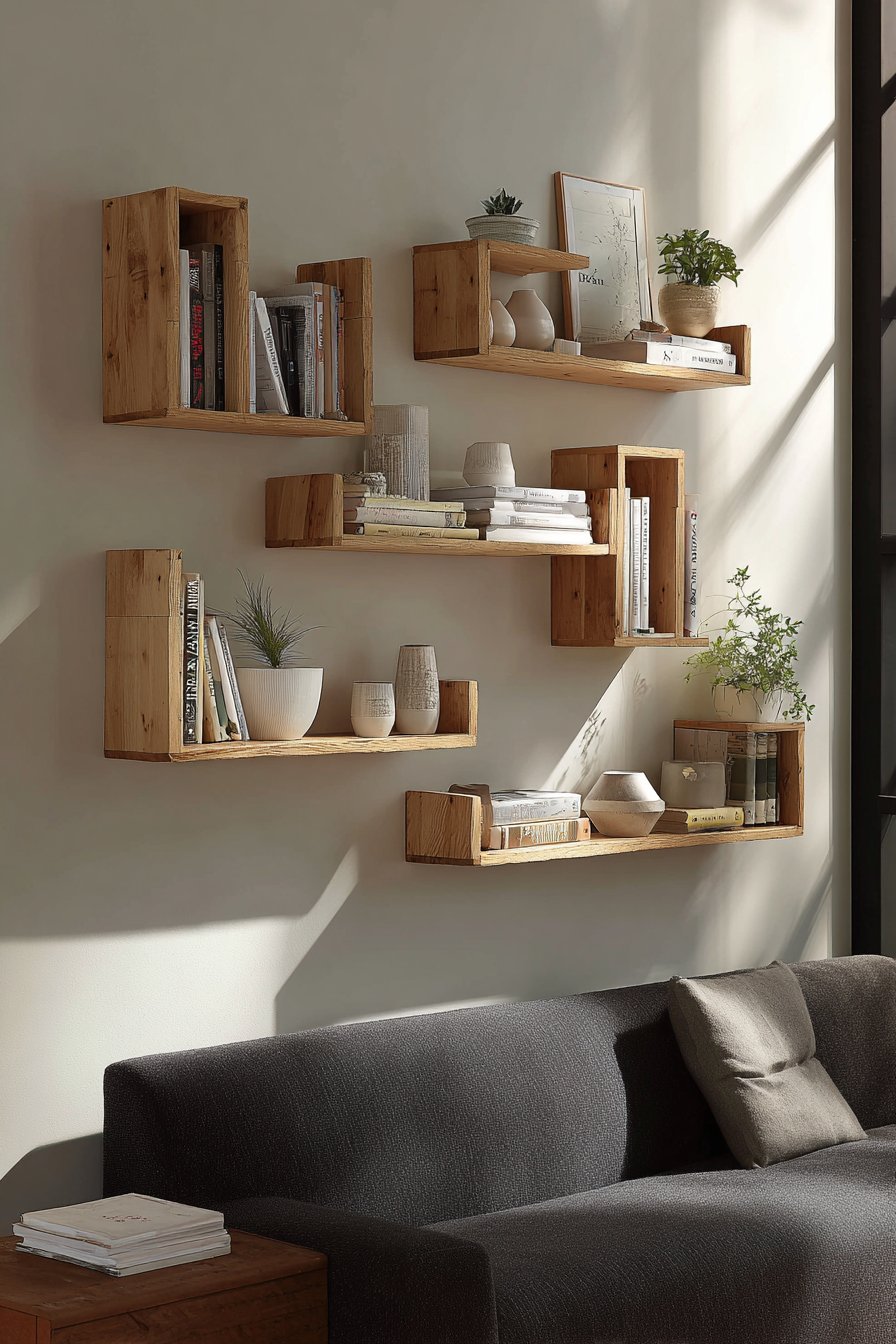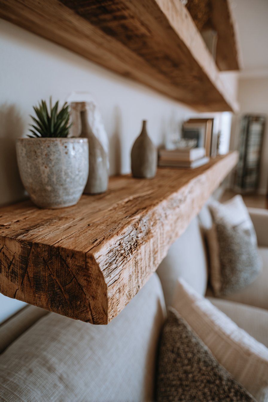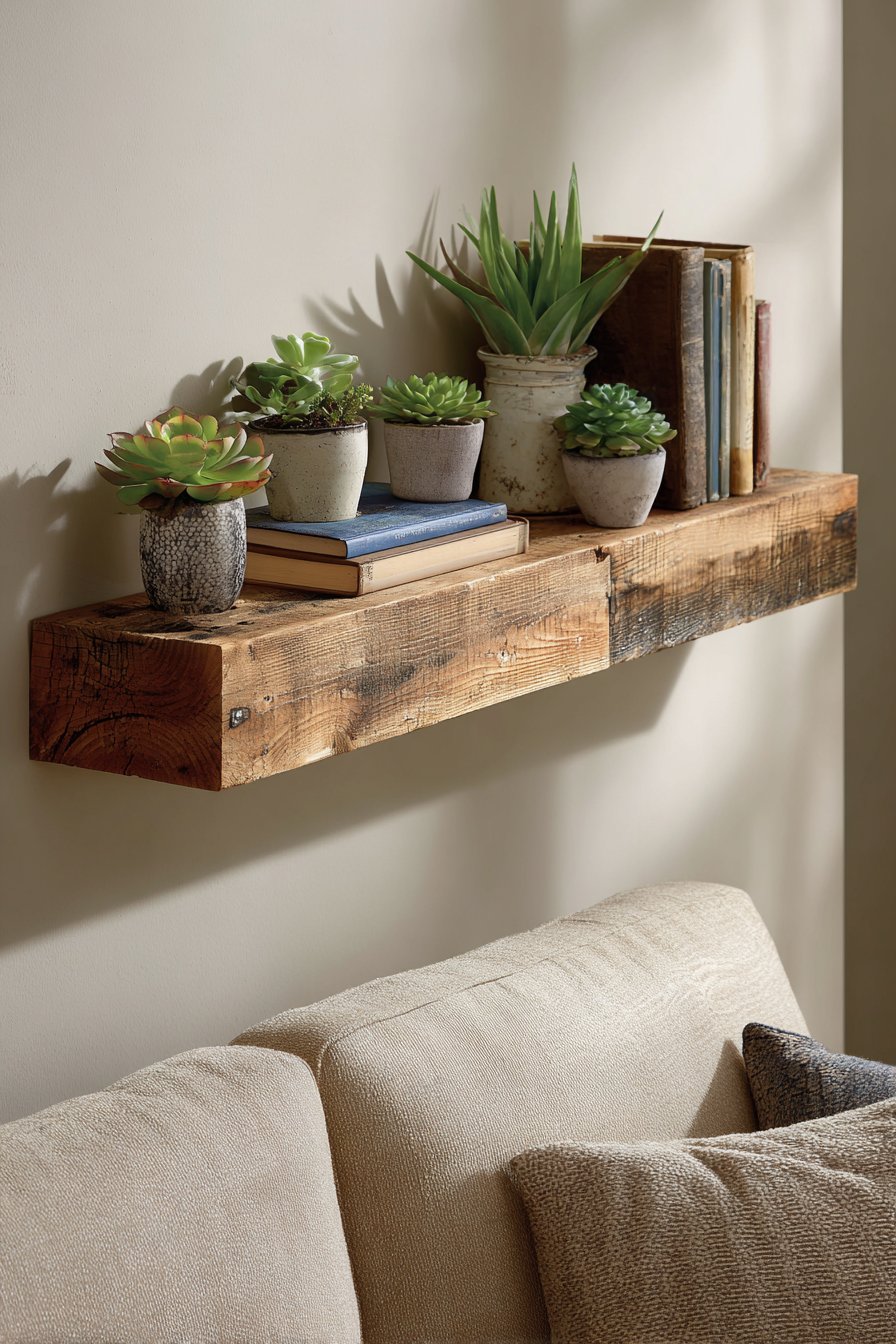 3. Rustic Floating Shelf Display
