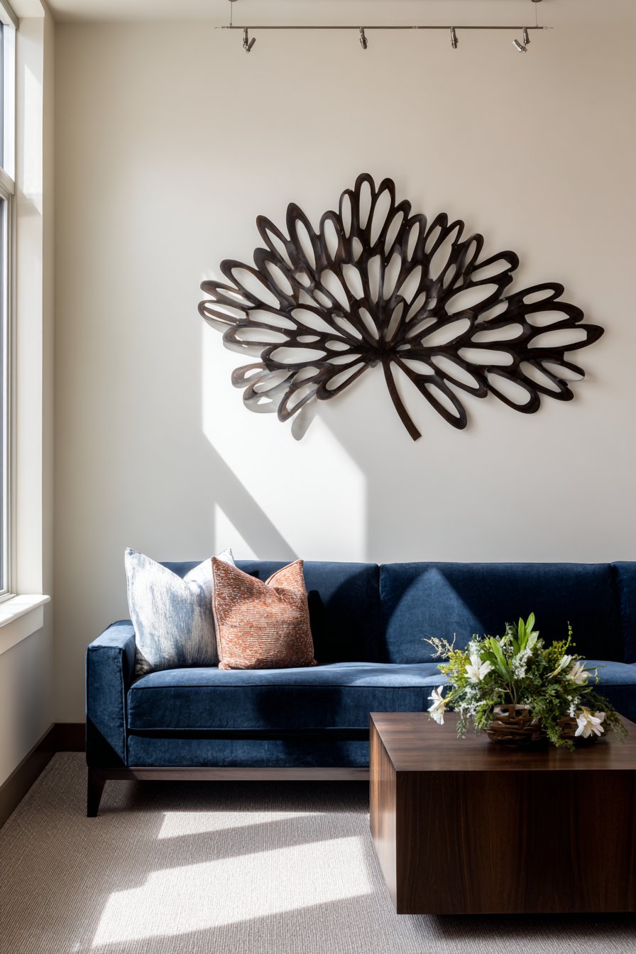 Material considerations significantly impact both aesthetic and practical success of wall decor above couches. Natural materials like wood, metal, ceramic, and fiber bring warmth and texture that purely photographic or printed artwork cannot replicate. The interplay between sofa upholstery texture and wall decoration material creates layers of tactile interest that elevate rooms from visually flat to dimensionally rich. Velvet sofas paired with brass-framed mirrors, leather Chesterfields beneath vintage maps, linen upholstery with macramé textiles—these material relationships create sophisticated depth through contrasting or complementary textures.
