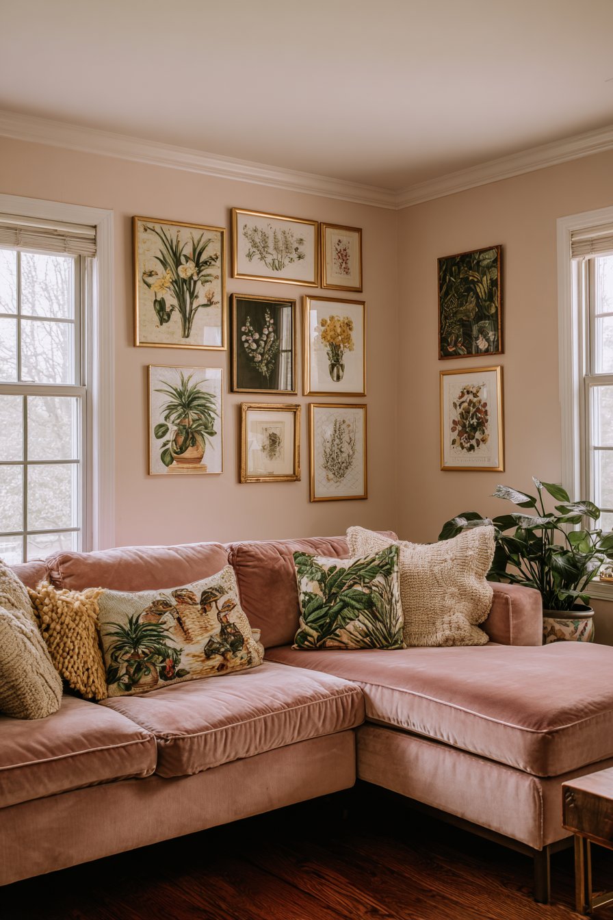 - Select botanical prints with similar color saturation for unified visual impact
