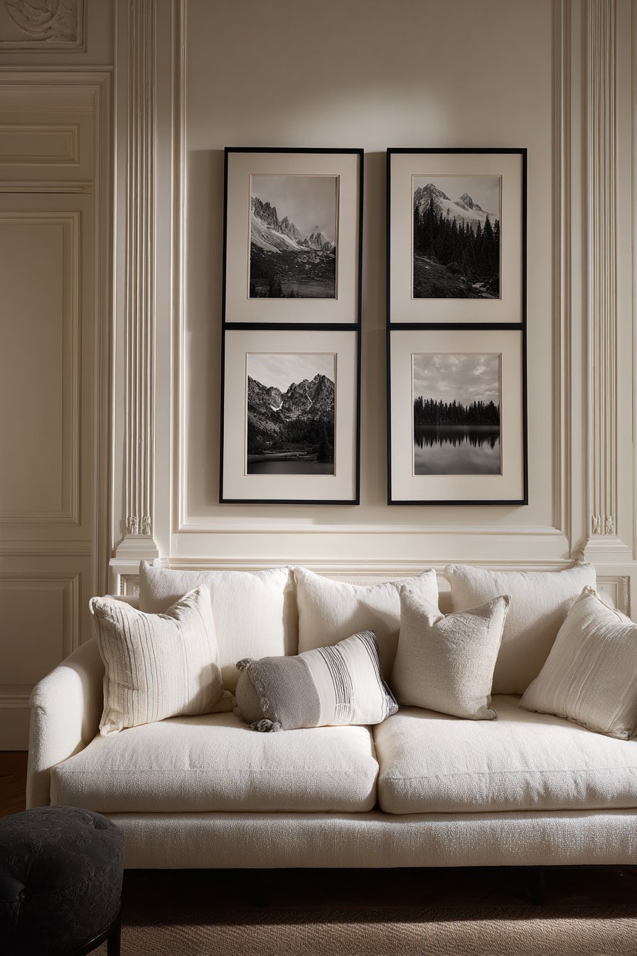 - Choose identical matting and frames for cohesive symmetrical displays