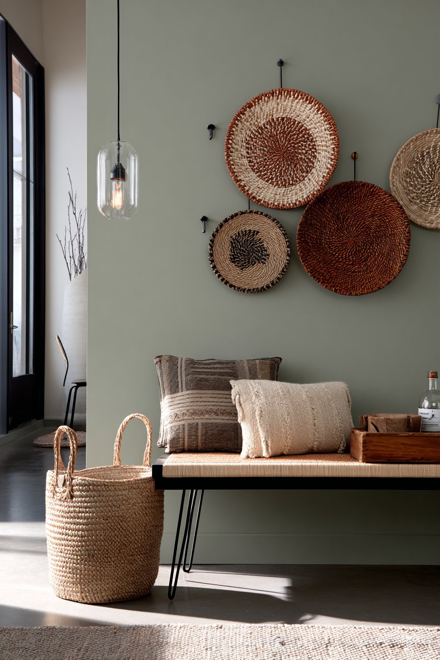 Macramé wall hangings and woven baskets mount at various heights, adding textural interest while providing practical storage. The handcrafted quality of these elements embodies the bohemian appreciation for artisanal work and global craft traditions. Each piece brings its own character while contributing to the layered, collected-over-time aesthetic that defines bohemian interiors.