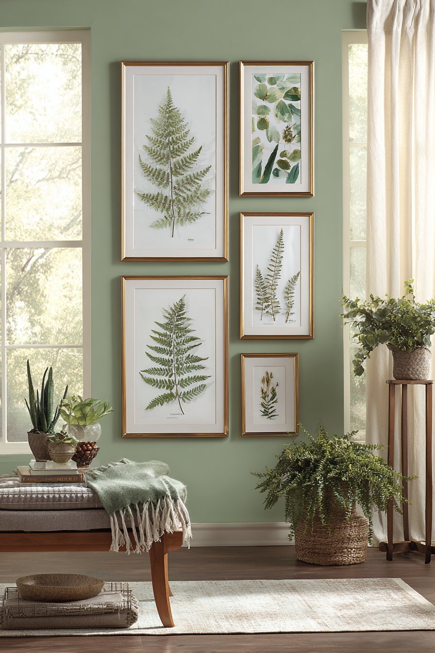 • Choose a wall color that complements your botanicals—sage green, soft gray, or cream work beautifully