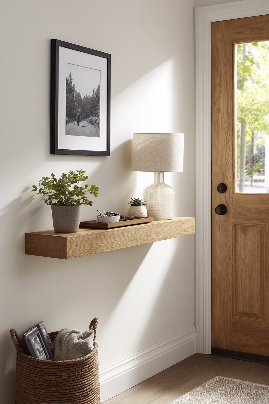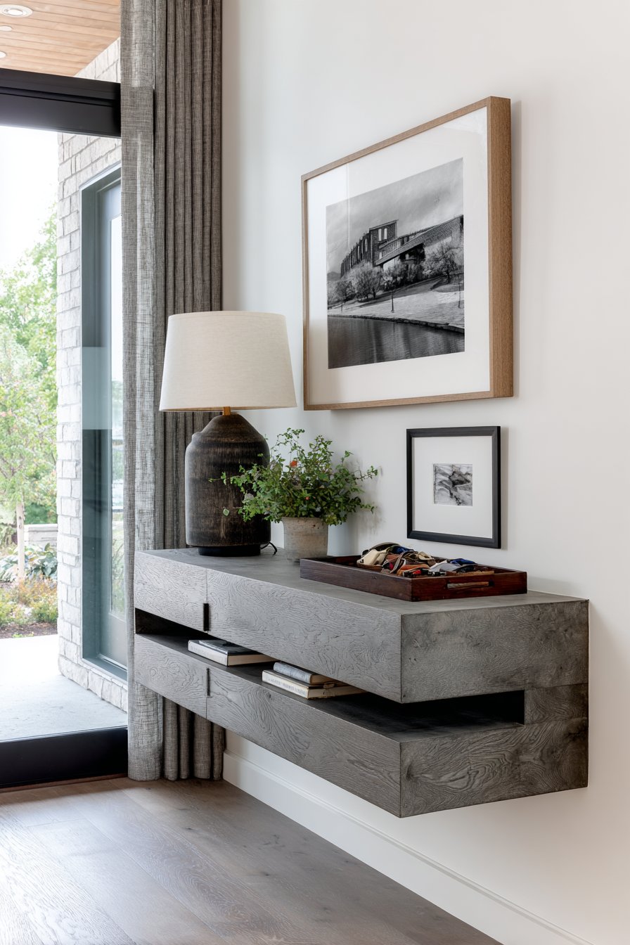 This solution exemplifies how narrow walls can become functional storage while maintaining design integrity. The 8-inch depth provides genuine utility without protruding awkwardly into walkways, while the minimal styling prevents the space from feeling cluttered. It’s an approach that works equally well in modern farmhouse, industrial, or transitional interiors, adapting to various aesthetics while maintaining its essential character.