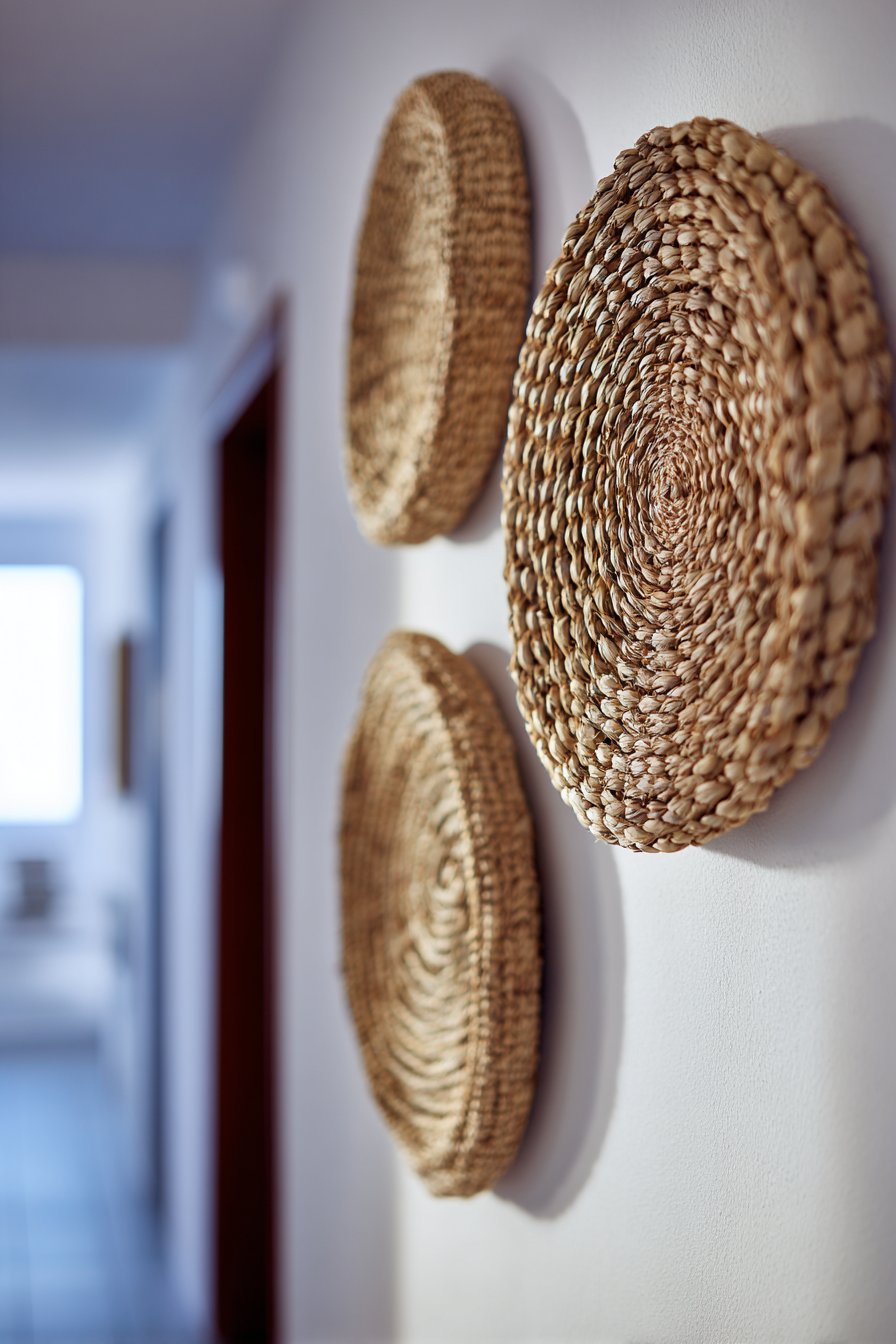 • Hang on white or light neutral walls to maximize the warm contrast of natural rattan