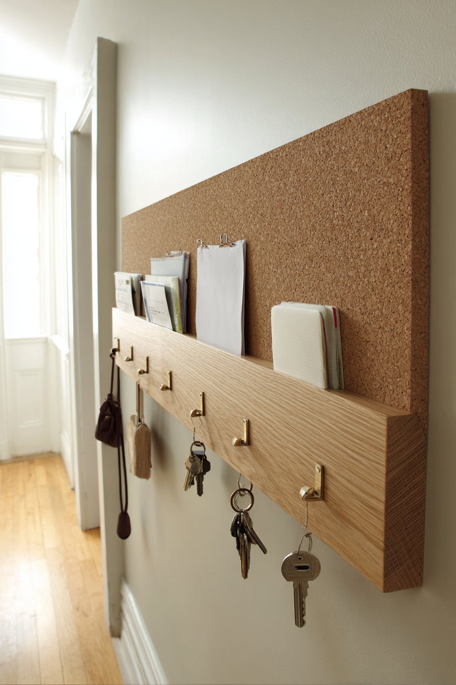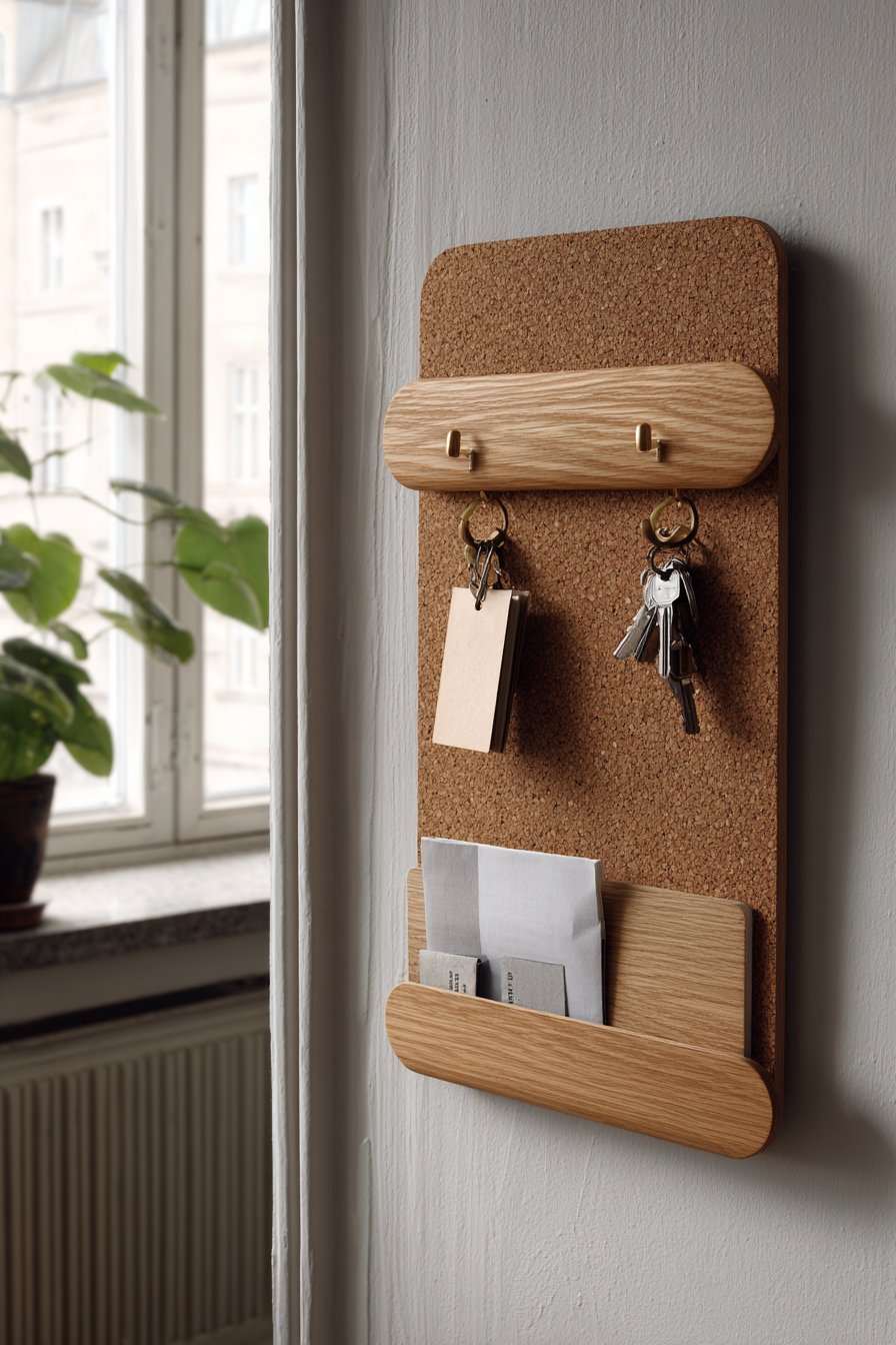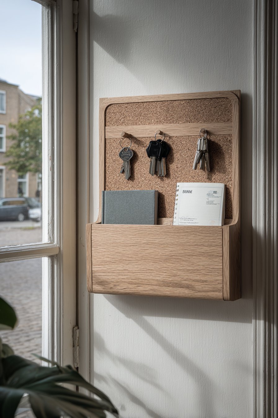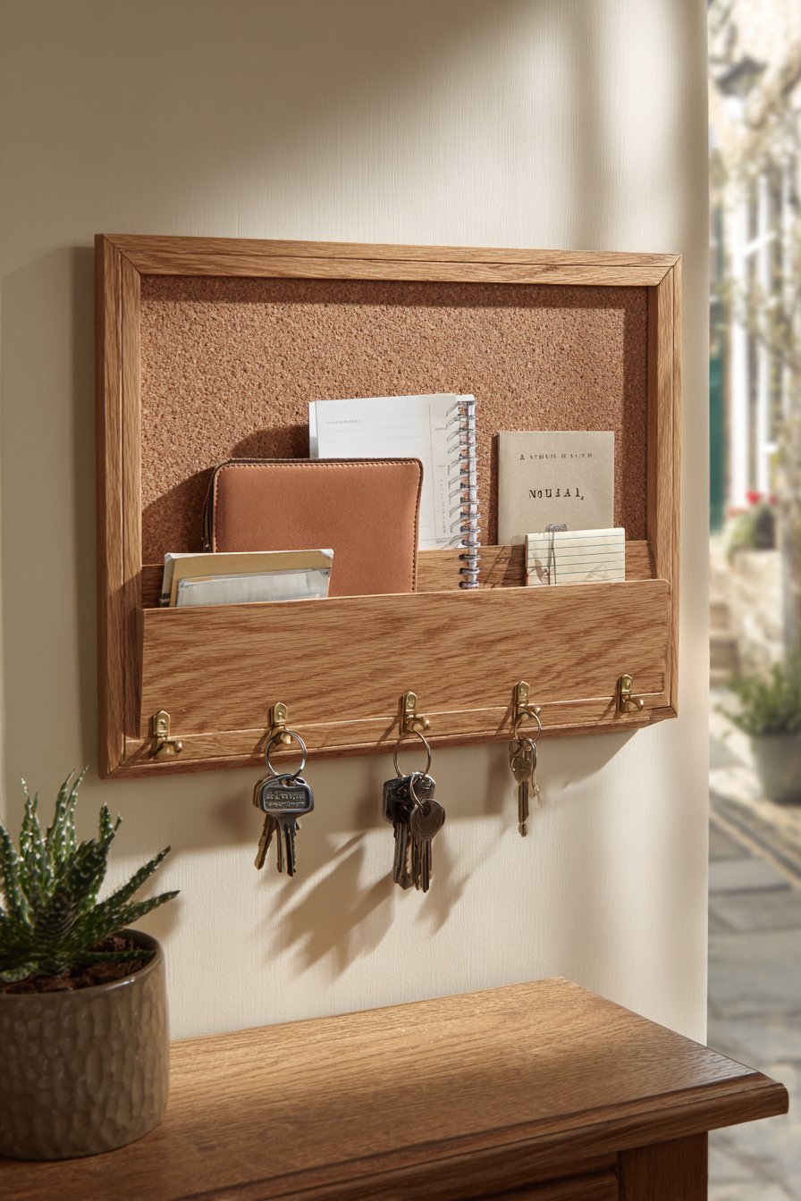 What makes this solution brilliant is how it addresses real-world needs while maintaining aesthetic appeal. Every family struggles with the daily chaos of keys, mail, and miscellaneous items that accumulate near entryways. By dedicating a narrow wall to organization, you create a specific home for these items, reducing clutter elsewhere while keeping essentials accessible. The vertical orientation maximizes storage without consuming valuable floor space, while the oak finish ensures the organizer feels like intentional furniture rather than utilitarian afterthought.