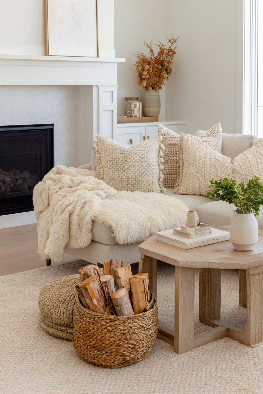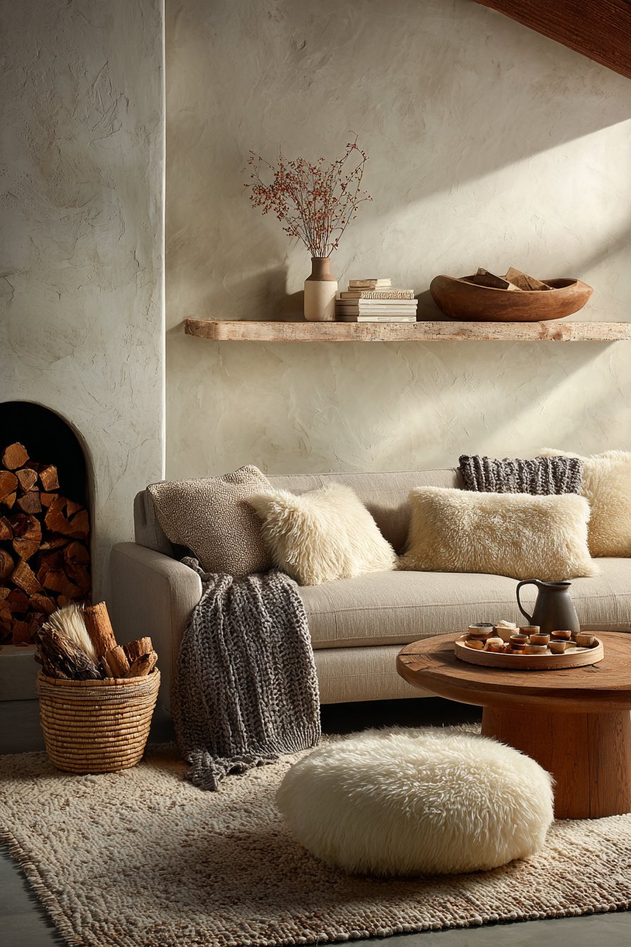 - Use seasonal textiles like knits and sheepskin for winter warmth