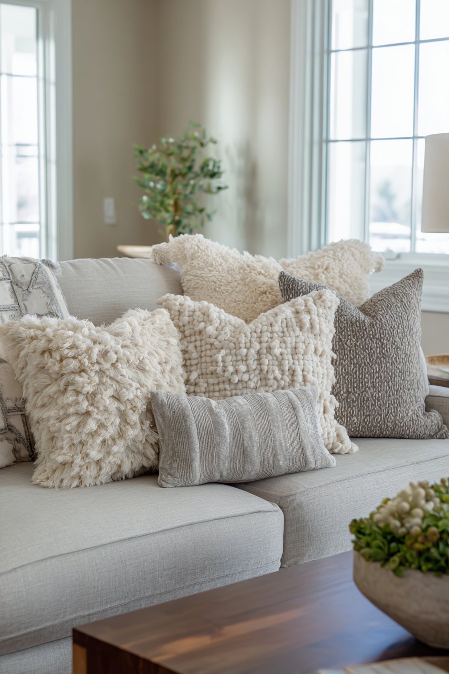 - Layer pillow tones from light to dark to reveal depth in monochromatic schemes