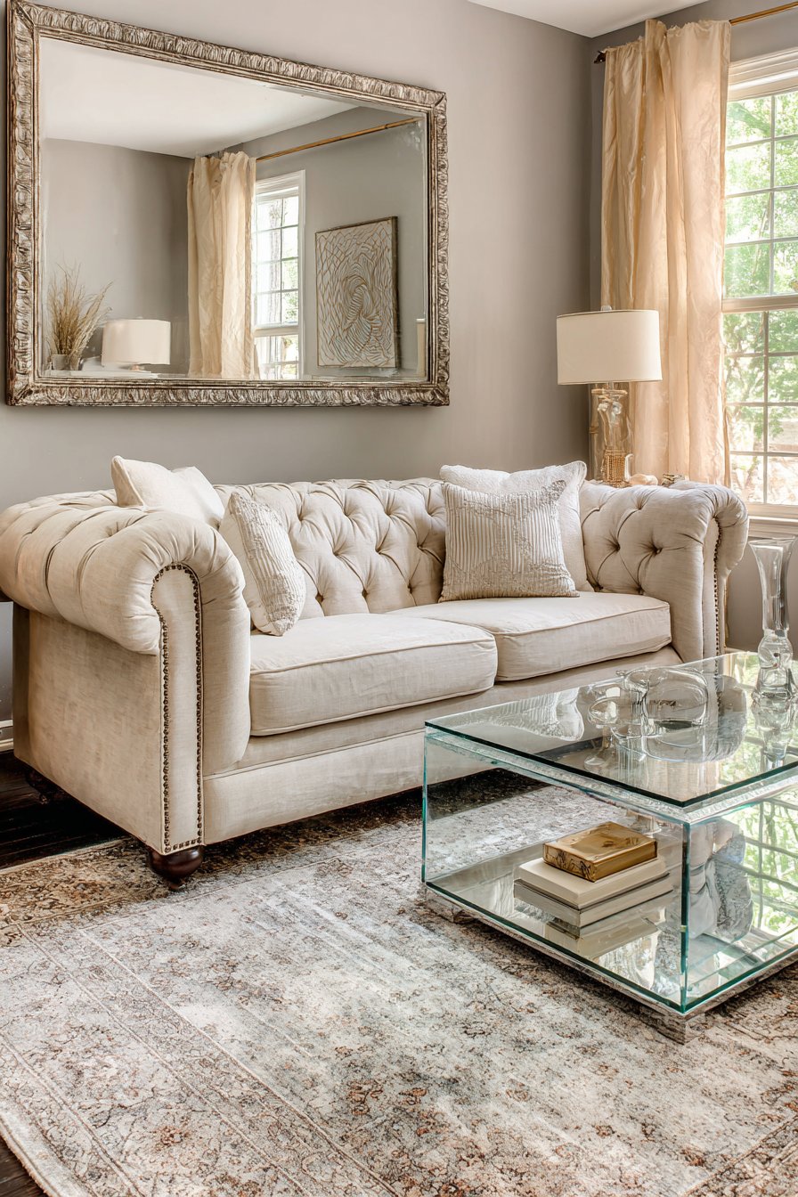 - Use glass-top tables to maintain visual lightness in rooms with substantial furniture