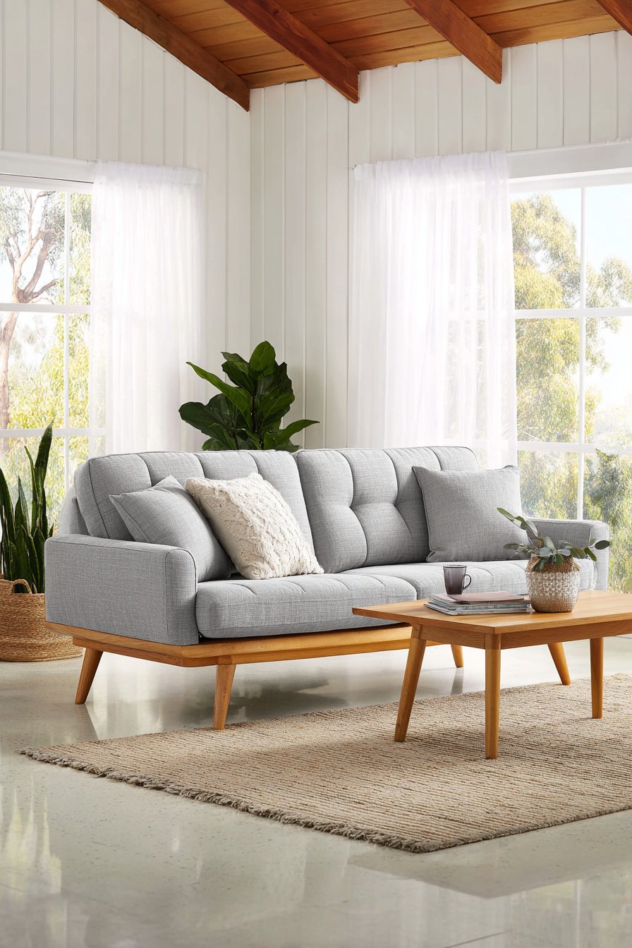 - Select sofas with exposed wooden legs for authentic Scandinavian style