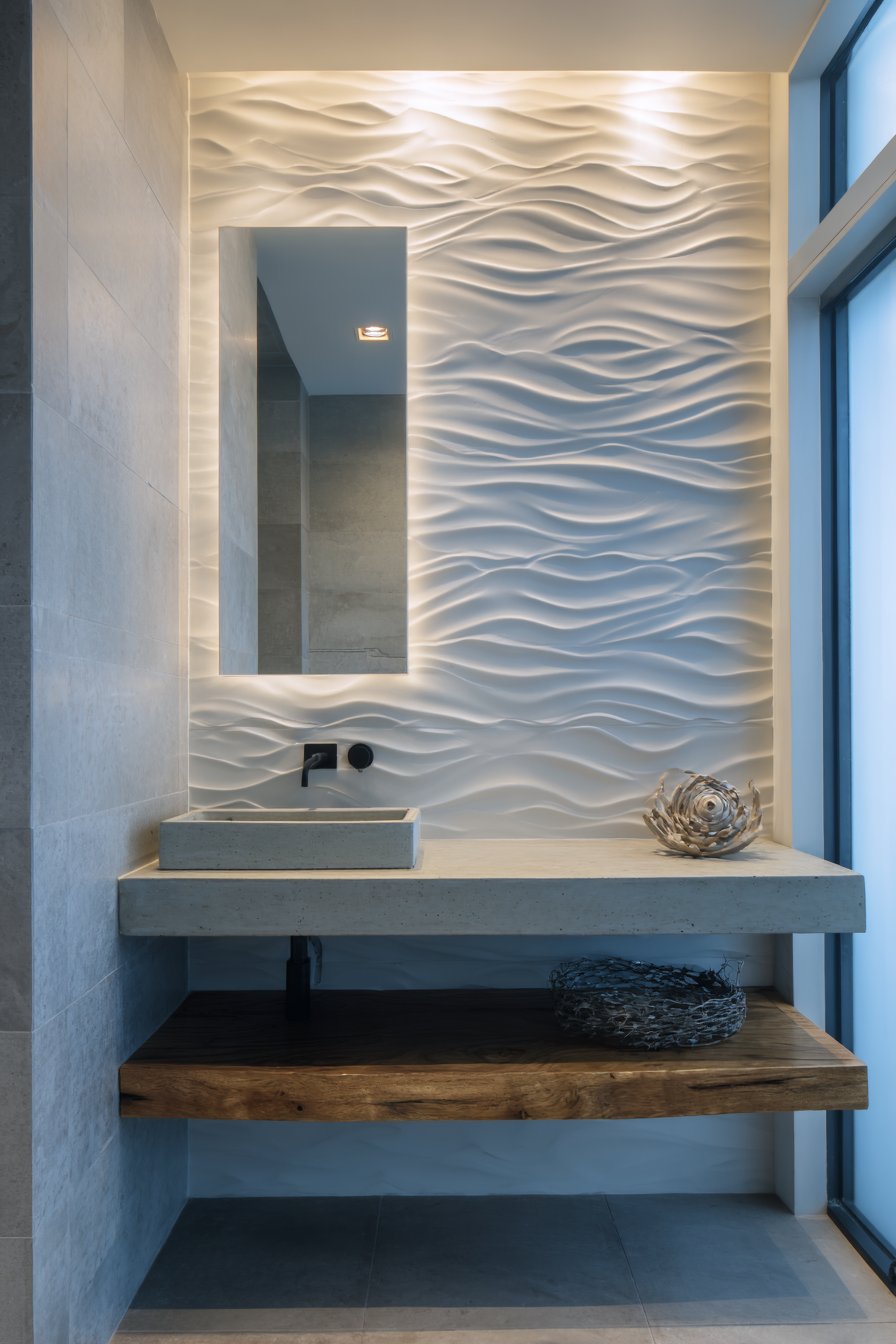 9. Three-Dimensional Wave Wall Powder Room