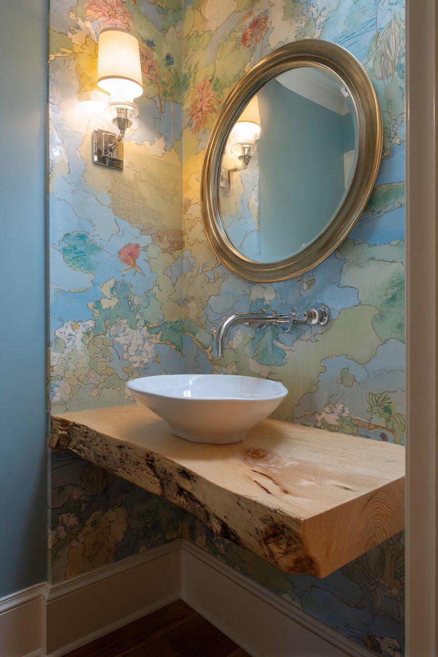 - Install wainscoting at proper proportions—typically one-third of wall height in powder rooms