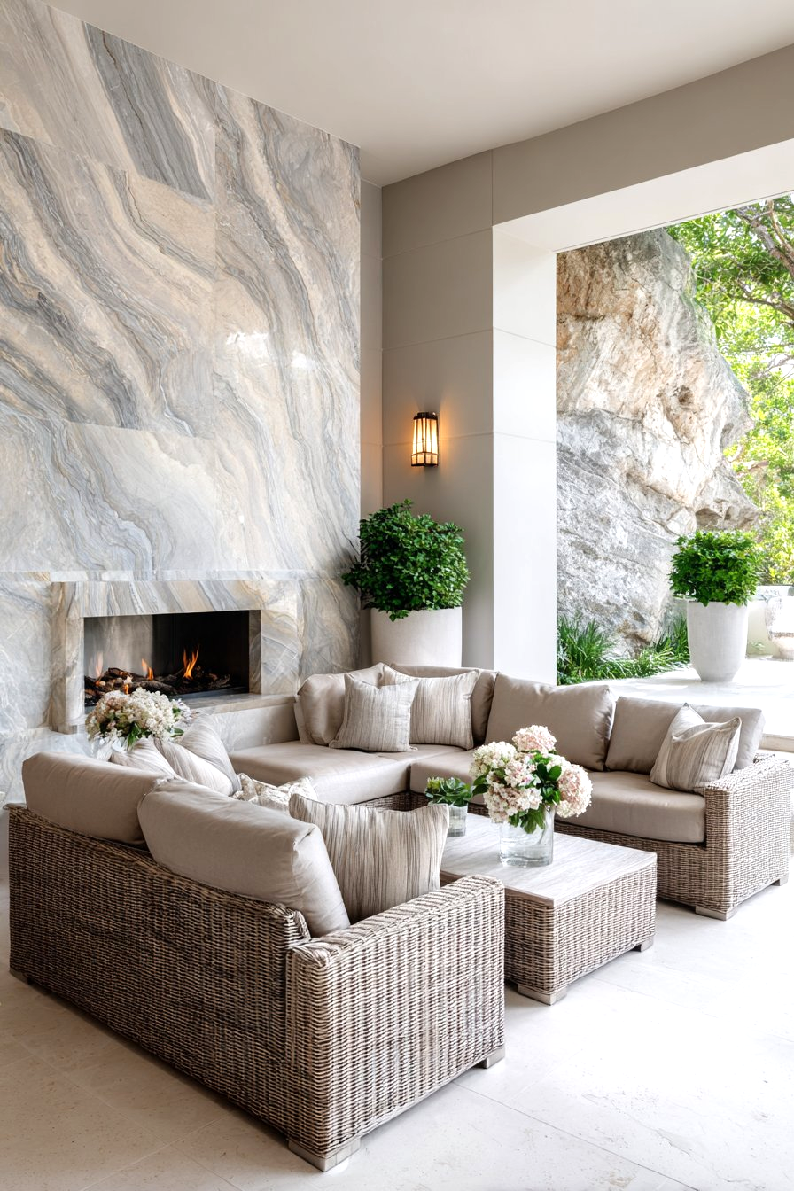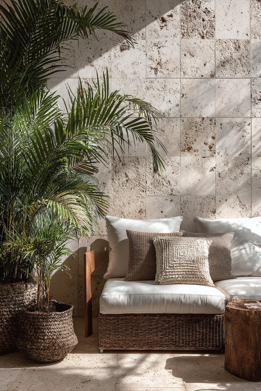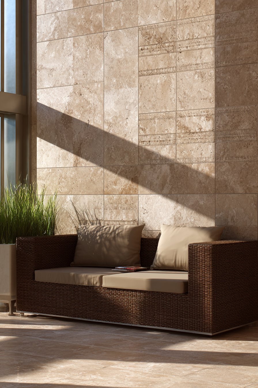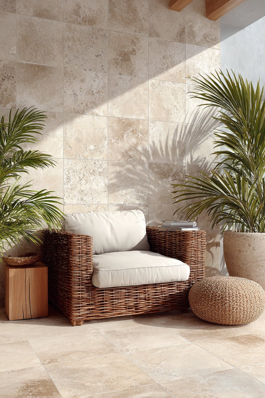 - Pair warm travertine tones with natural materials like teak, wicker, or stone for a cohesive outdoor aesthetic
